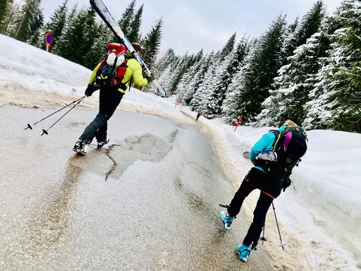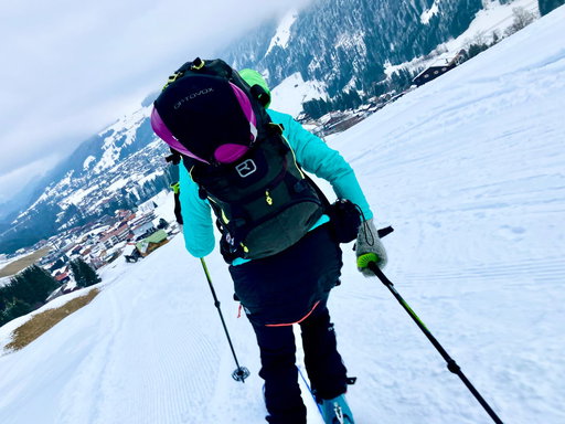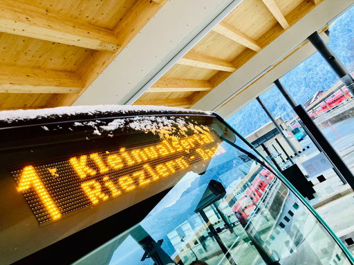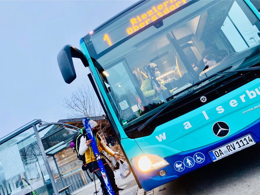 Ganz hinten drin in den Allgäuer Alpen gibt es ein vorbildliches Tal, das man idealer mit Öffis gar nicht errreichen kann. Einfach am Bahnhof Oberstdorf den Walserbus 1 nehmen, relaxed bis zur Endhaltestelle Baad chauffieren lassen, aussteigen und sofort mit den Ski loslaufen. So leicht geht das, ohne verzweifelte Parkplatzsuche und dem irren Verkehr. Es ist ein Segen für die schöne Gegend und die Menschen, die dort leben.