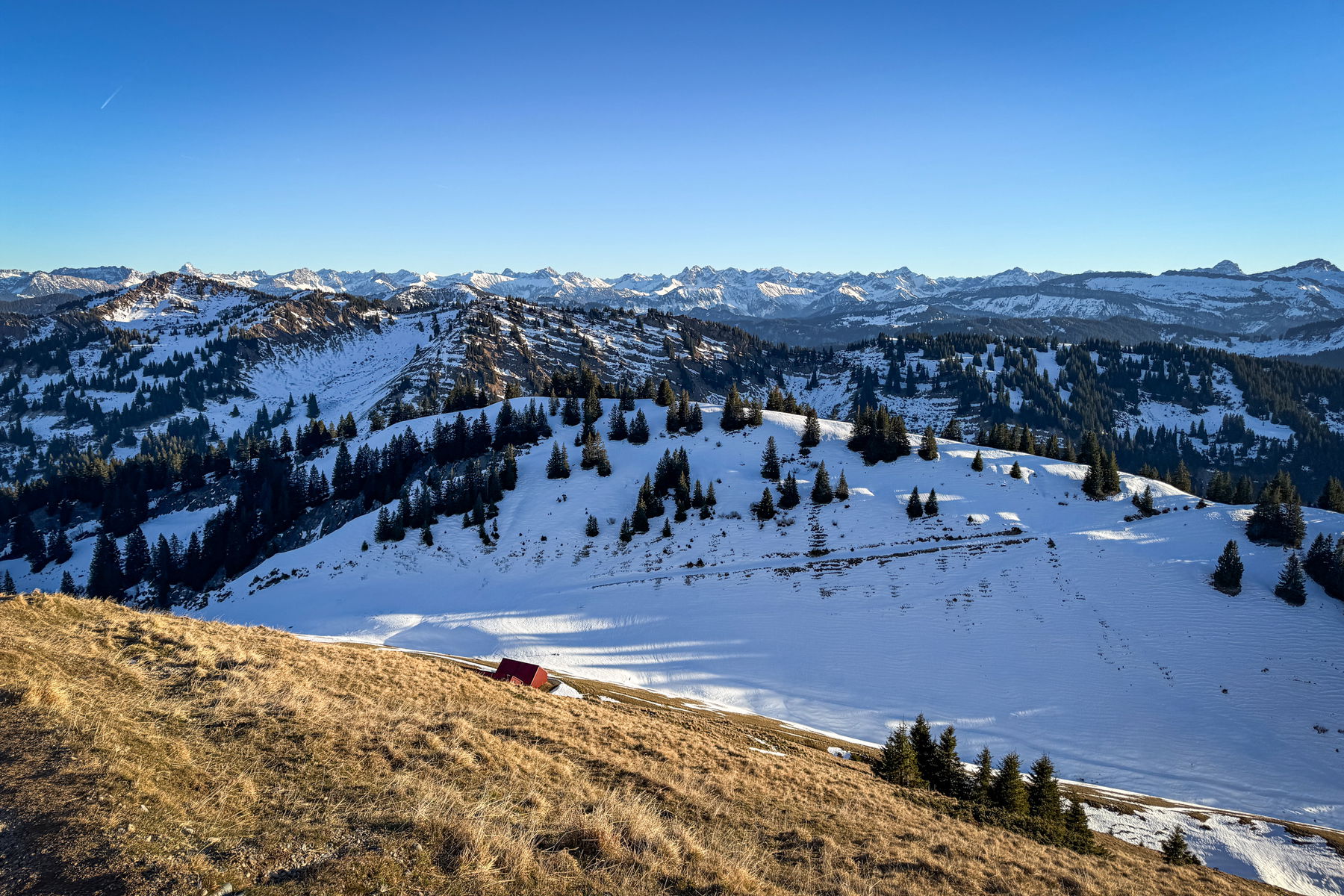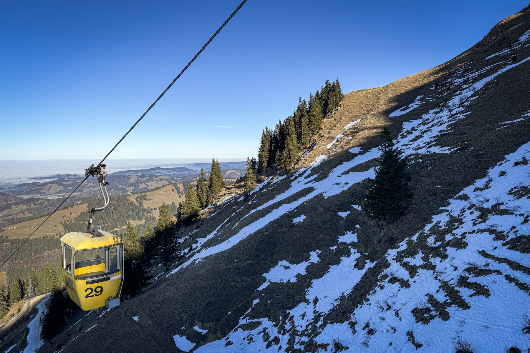 Die Hochgratbahn fährt bis 16 Uhr im Winter. Ich hätte es also grad noch geschafft runterzufahren. Wenn man nicht auf der Hütte übernachten möchte, wäre das eine schöne Alternative.