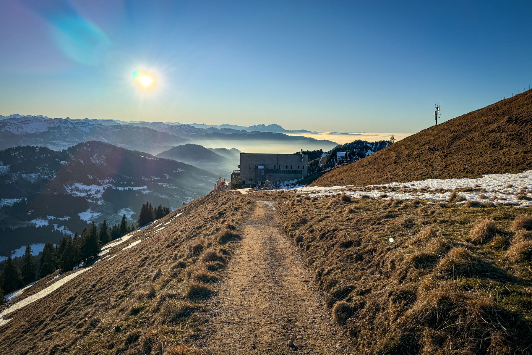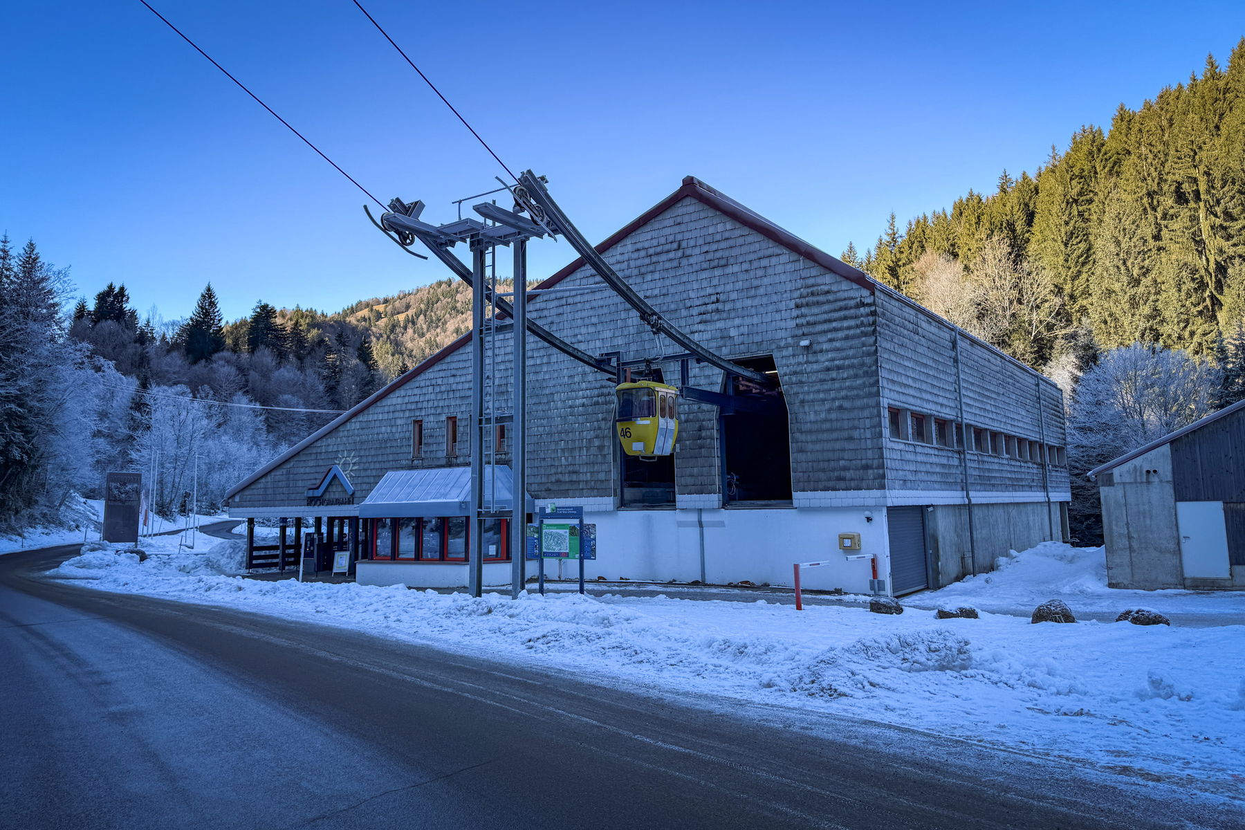 Weit ist es nicht mehr zur Bergstation, von wo aus die Hütte dann in Sichtweite liegt. Man kann hier problemlos noch den Hochgrat mitnehmen, ich wollte aber erst in die Hütte und hatte das dann auf den nächsten Tag geschoben. Im Winter ist halt alles doch anstrengender als im Sommer.