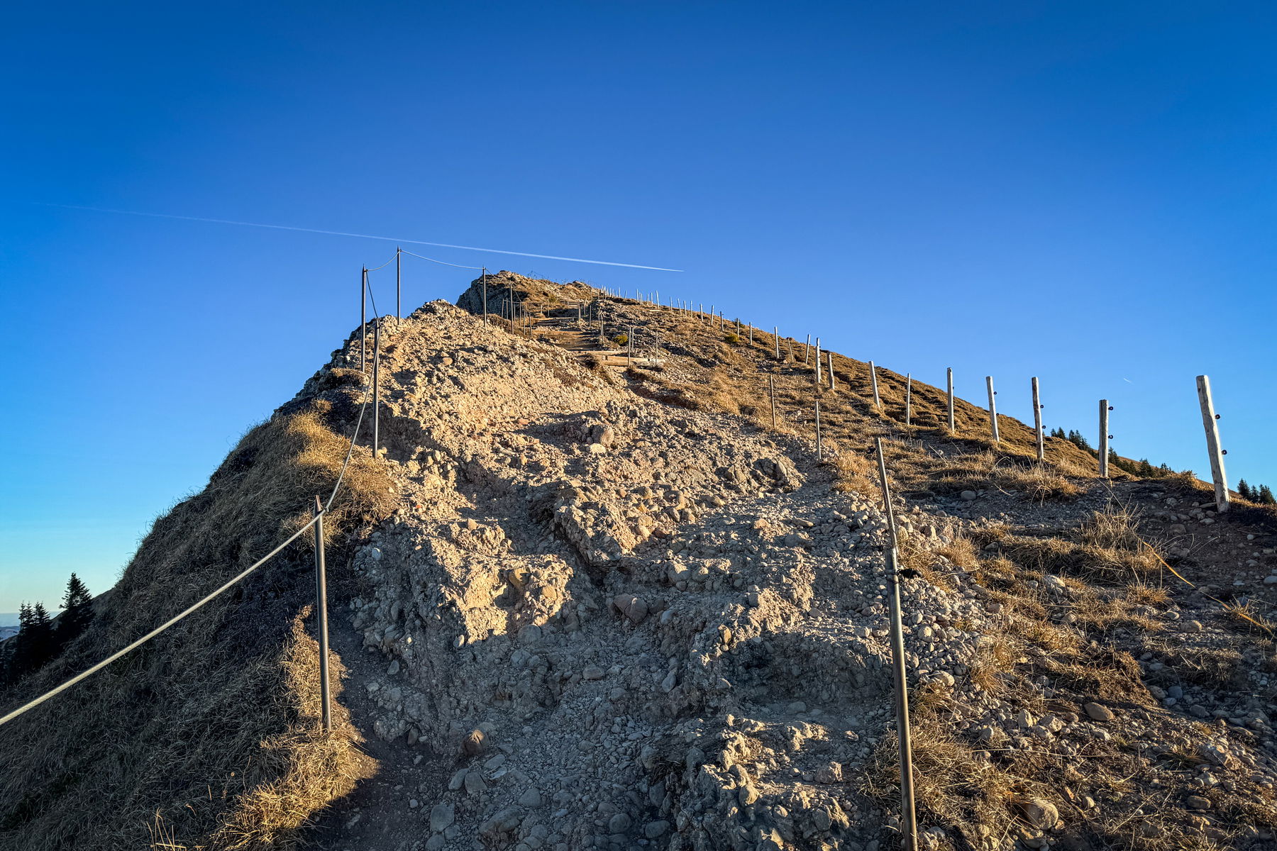 Zum Hochgrat gibt es zwei Wege: direkt der Farngrat, der zwar als SAC T3 klassifiziert aber gut gesichert ist, und selbst für mich mit Höhenangst gut machbar war, und weiter unten der Panoramaweg. Ich bin den Farngrat hoch und am Panoramaweg wieder runter.