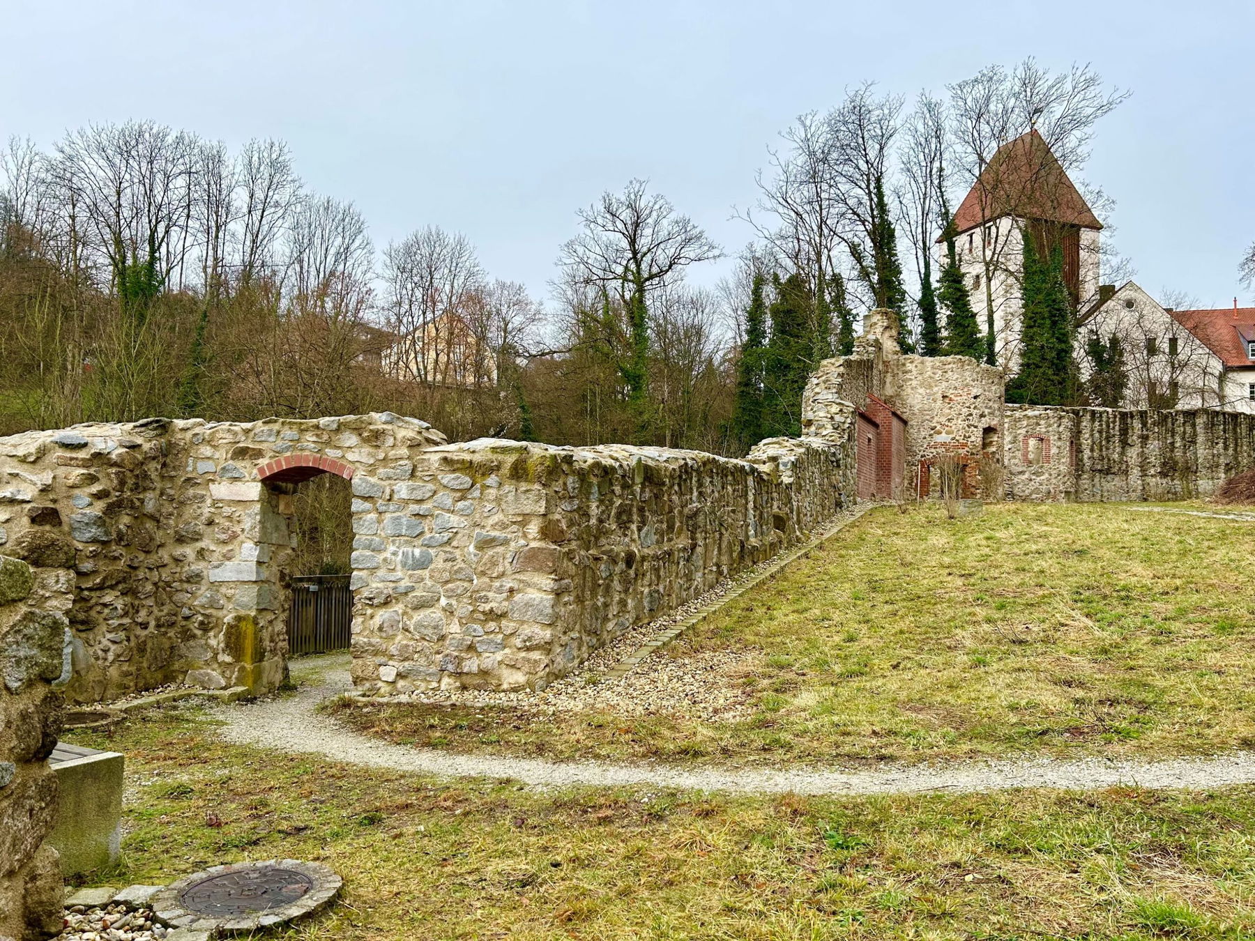 Doch zuerst passiere ich den wunderschönen Ort Vornbach, wandere durch den Friedhof, vorbei am ehemaligen Kloster Vornbach (Titelbild) und zahlreichen historischen Gebäuden Richtung Schärding.