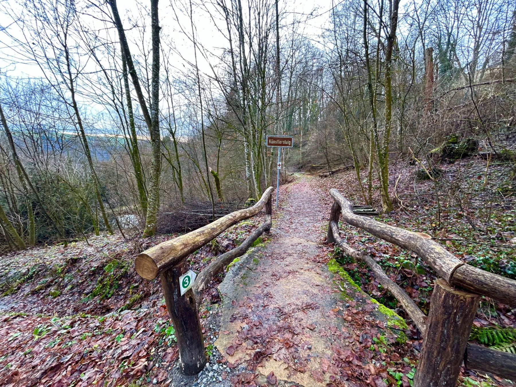 Im Schlossgarten finde ich ein kleines Tor, das hinaus in den Wald zum Künstlersteig führt. Der romantisch angelegte Pfad bringt mich zurück zum Innufer.