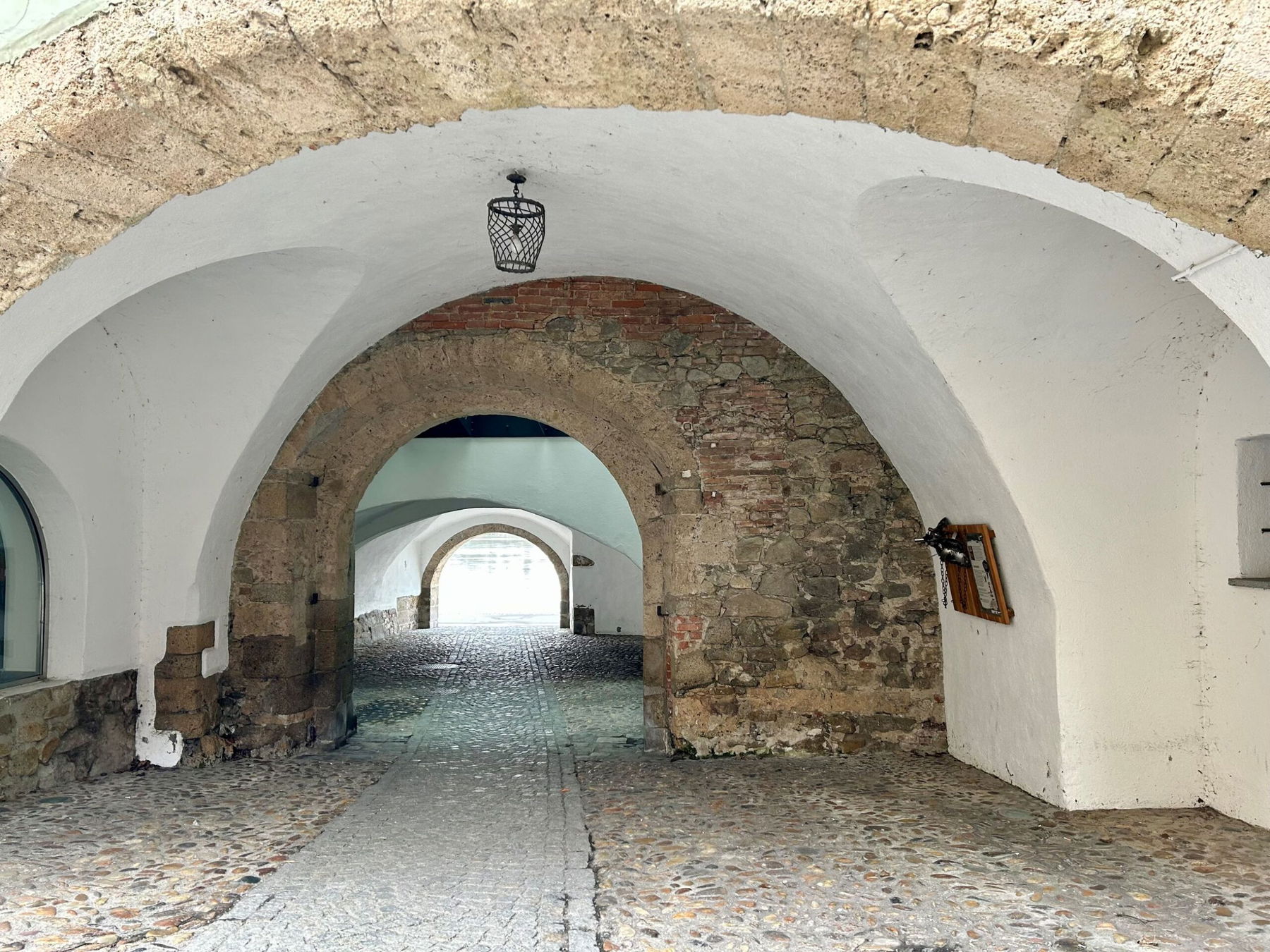 Gleich nach dem Überqueren des Inns entdecke ich ein kleines Tor, durch das ein Fußweg in die historische Altstadt Schärdings führt. Auf Schautafeln erfahre ich viel Geschichtliches über die Stadt.
