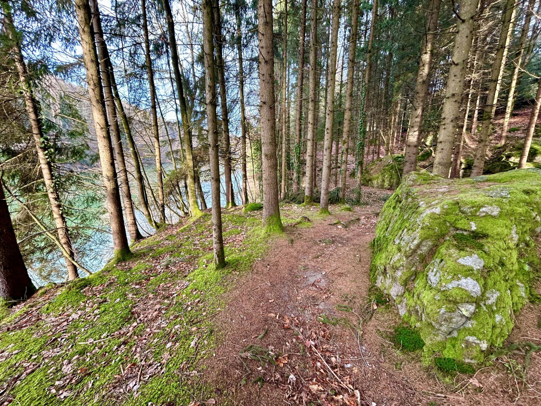 Ich finde den Kubin Weg wirklich romantisch. Die bemoosten Granitblöcke erinnern mich an meine Wanderungen in Sandl und im Waldviertel. Kein Wunder, befinde ich mich doch am Rand der gleichen geologischen Formation. Auch das Wasser des Inns grub sich zwischen Sauwald (Ö) und Neuburger Wald (De) durch die Granitfelsen der böhmischen Masse Richtung Donau. Dieser Abschnitt des Flussverlaufs nennt sich Vornbacher Enge.