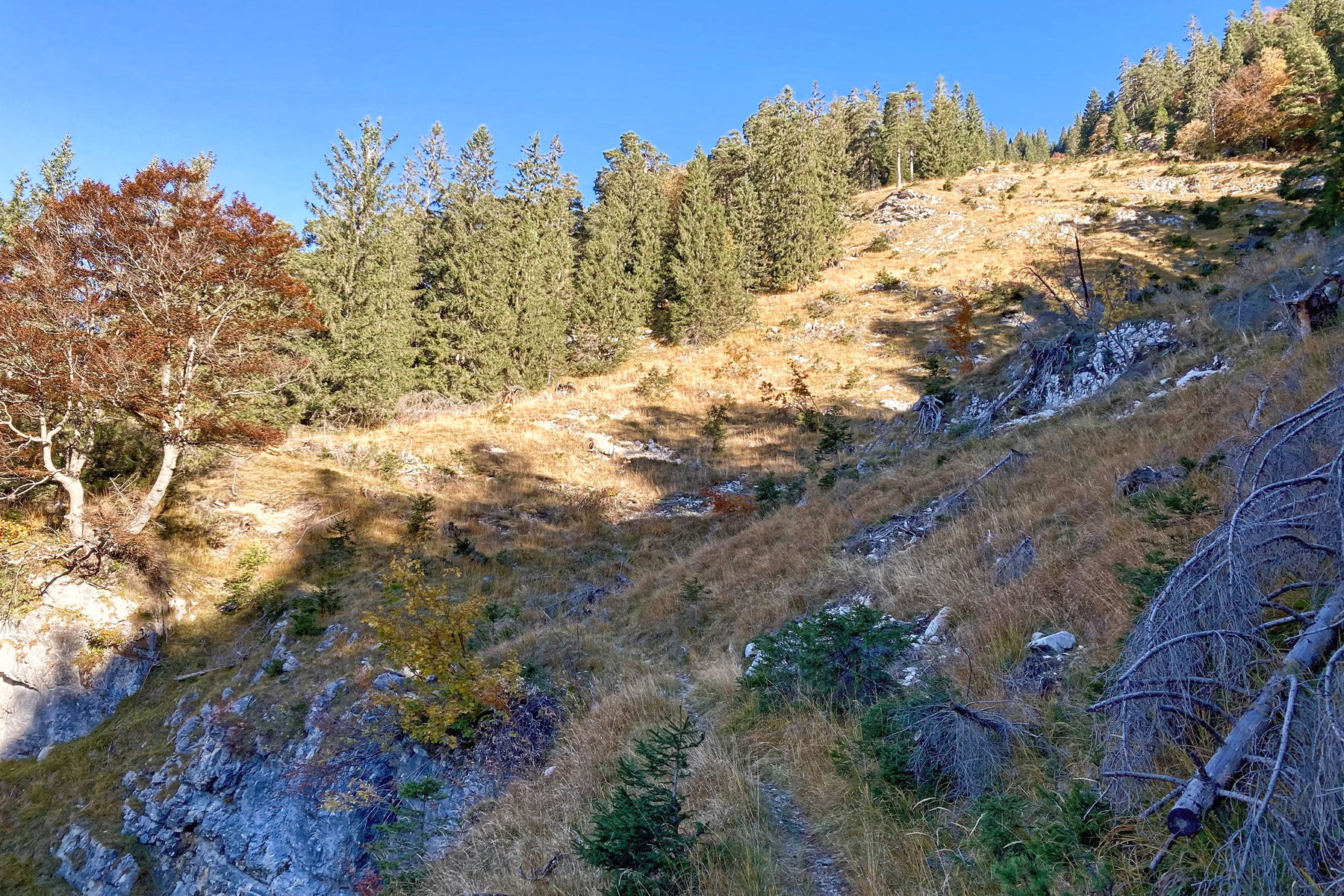 Beim Abstieg dem beschriebenen Weg auf der orog. li Seite des Schwarzenbachs folgen, bringt das eher nichts,