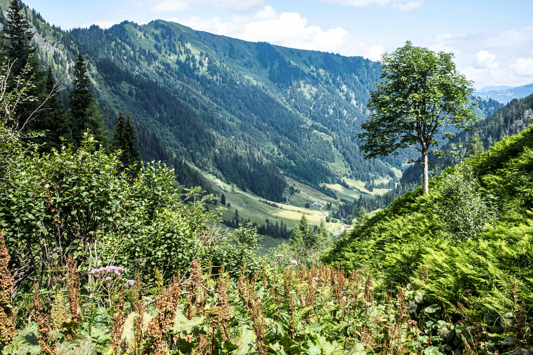 Die Julihitze ist erbarmungslos und die recht steilen 450 Höhenmeter bis zur Hütte schweißtreibend. Ein paar kleine Stellen sind mit Seilen gesichert, der Weg ist aber ansonsten problemlos zu begehen und eröffnet Blicke ins wunderschöne Kötschachtal, etliche Passagen führen durch den Wald.