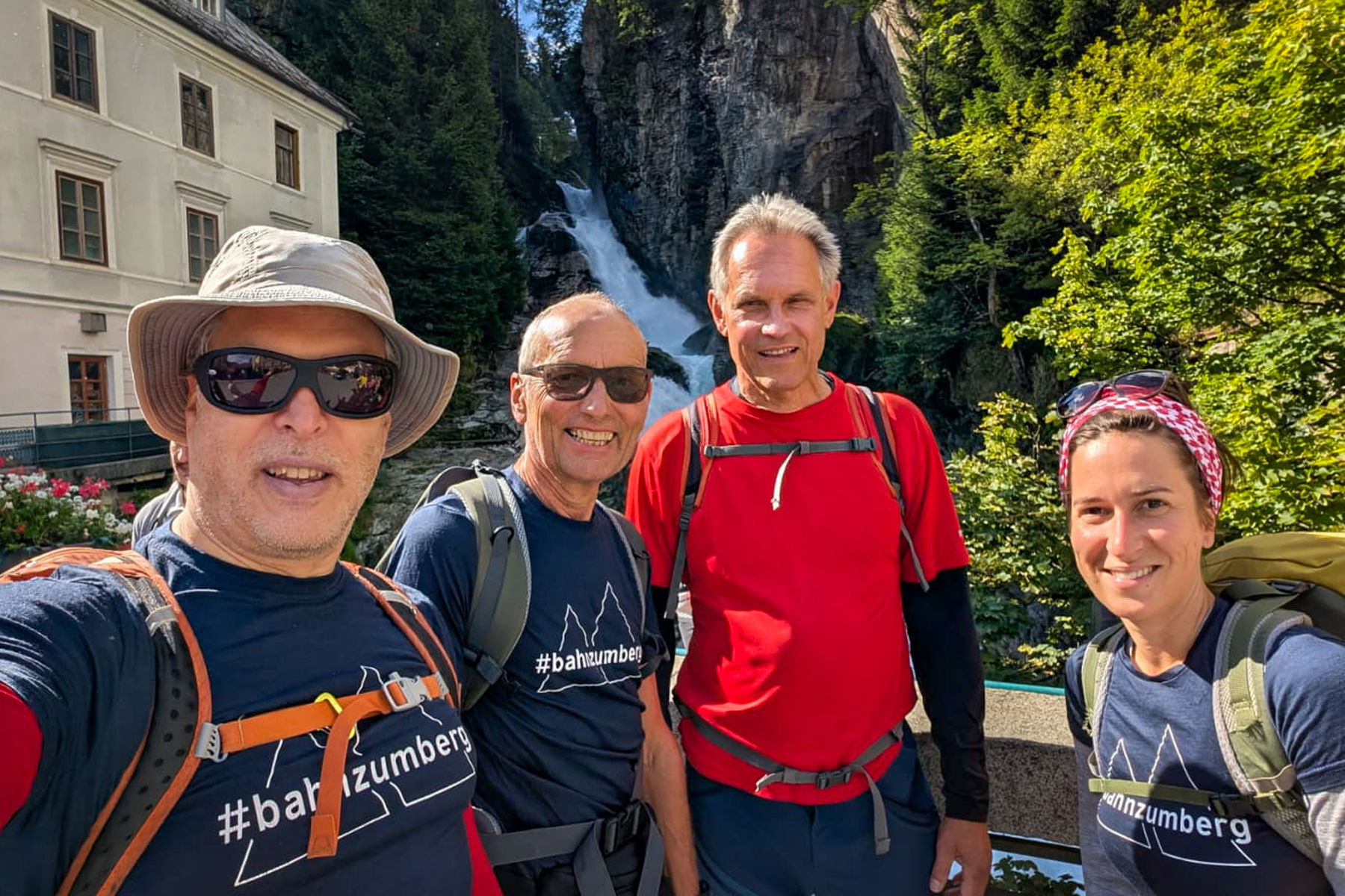Erstes Gruppenfoto: Check. Ich bin gleich sehr begeistert und luge vorsichtig zum Schild „Wasserfall-Weg“. Aber der soll es heute nicht werden, wir nämlich wollen in Richtung Graukogelhütte.