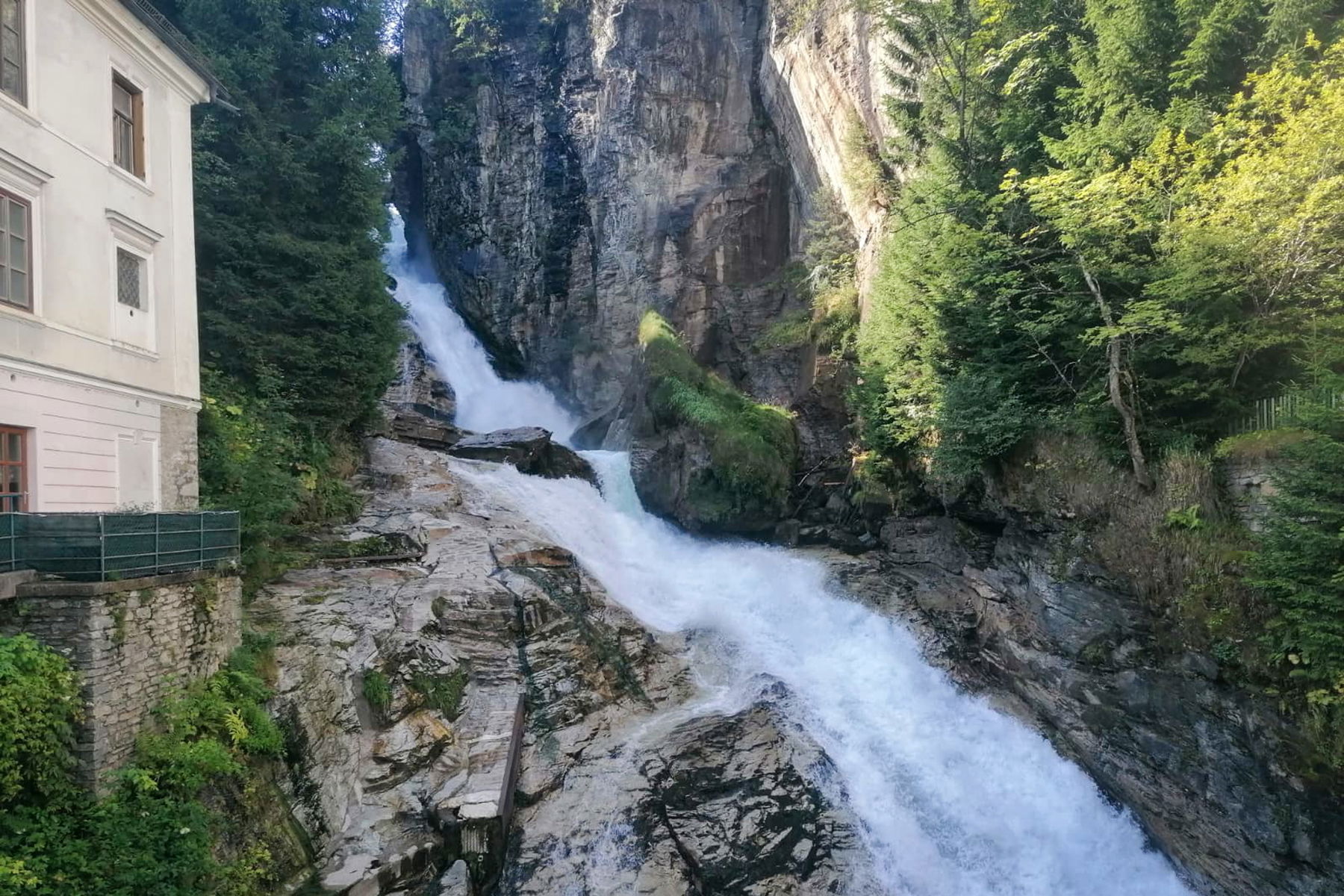 Der Abstieg bringt uns dafür direkt zur Hauptattraktion in Bad Gastein und ist schon sehr beeindruckend Der Gasteiner Wasserfall braust tosend mitten im Zentrum durch eine natürliche Schlucht.
