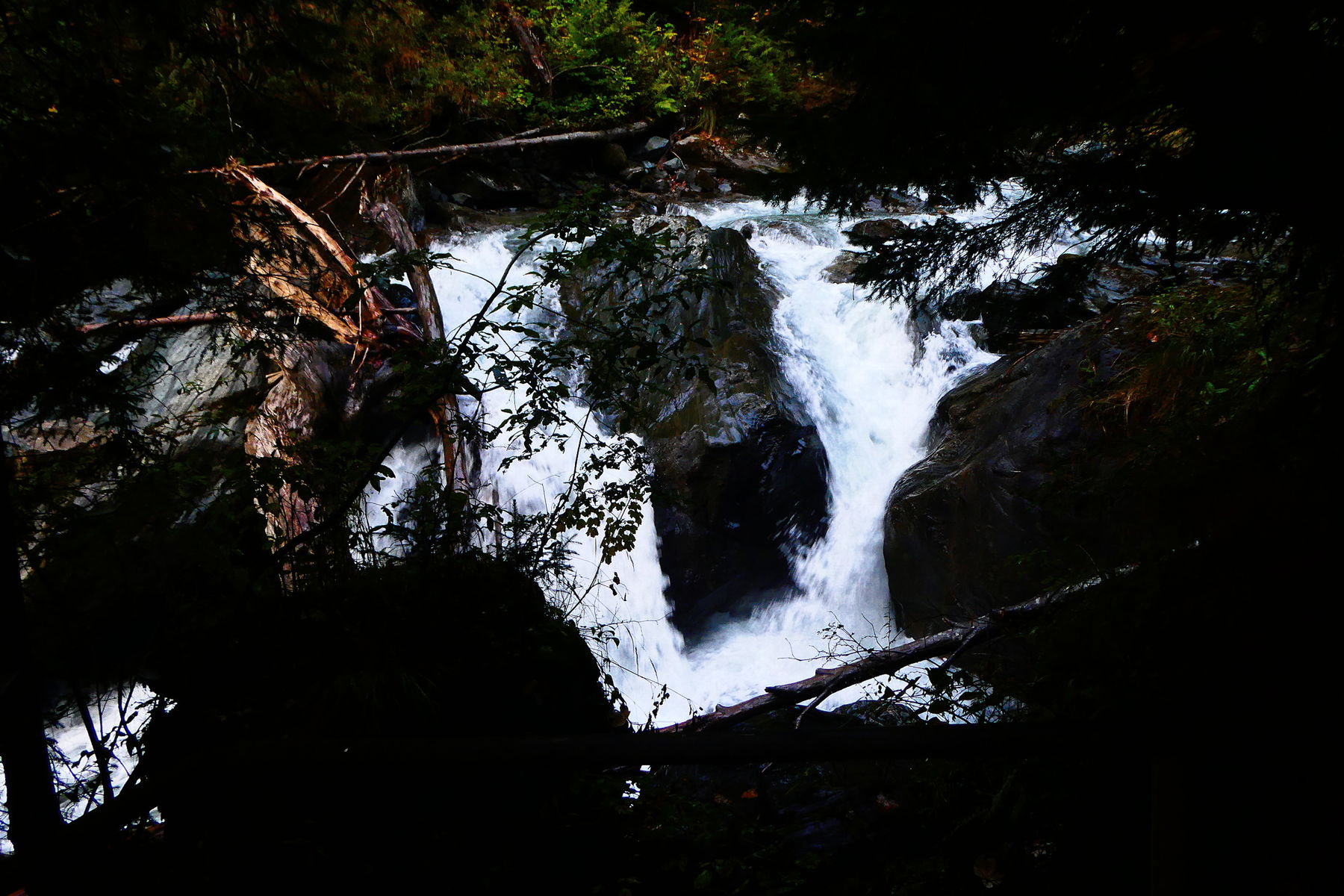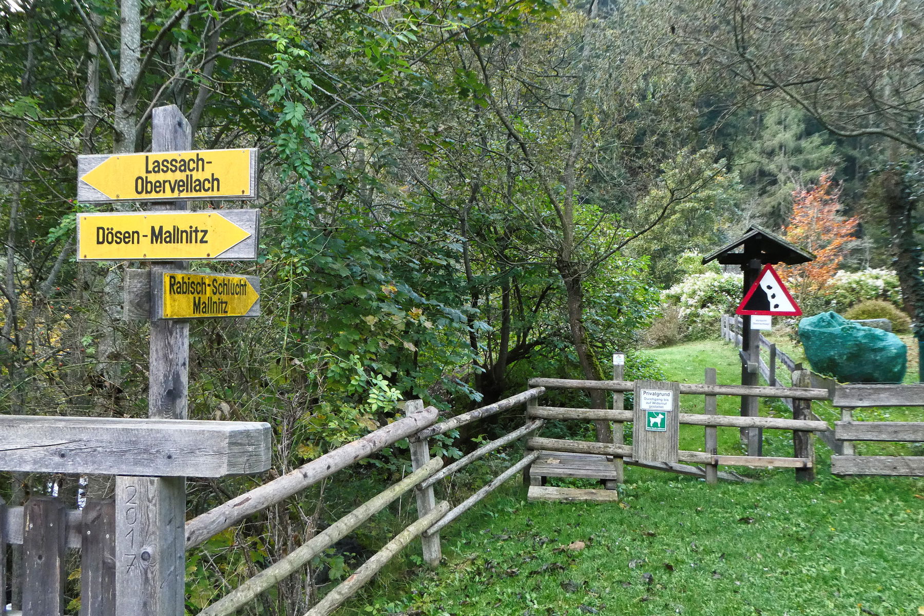 Ich gehe an den Gleisen entlang, an der Autoverladung vorbei und suche, wie ich den Einstieg finde. Das Schild „Rabisch-Schlucht“ verlockt mich: Hinunter zum tosenden Mallnitzbach, zur Gischt, zu den Urgewalten, die mich wie das Hintergrundrauschen der Schöpfung begleiten.