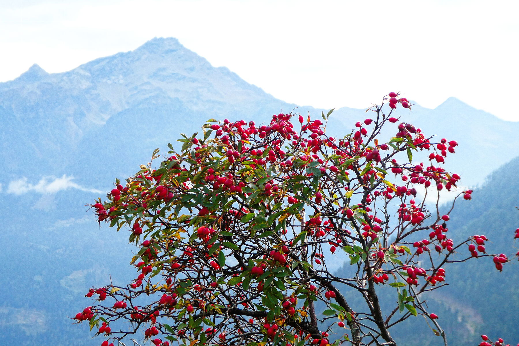 Bevor sich die Sonne hinter der Lonza verkriecht, fange ich das überreiche Hagebuttenrot ein.