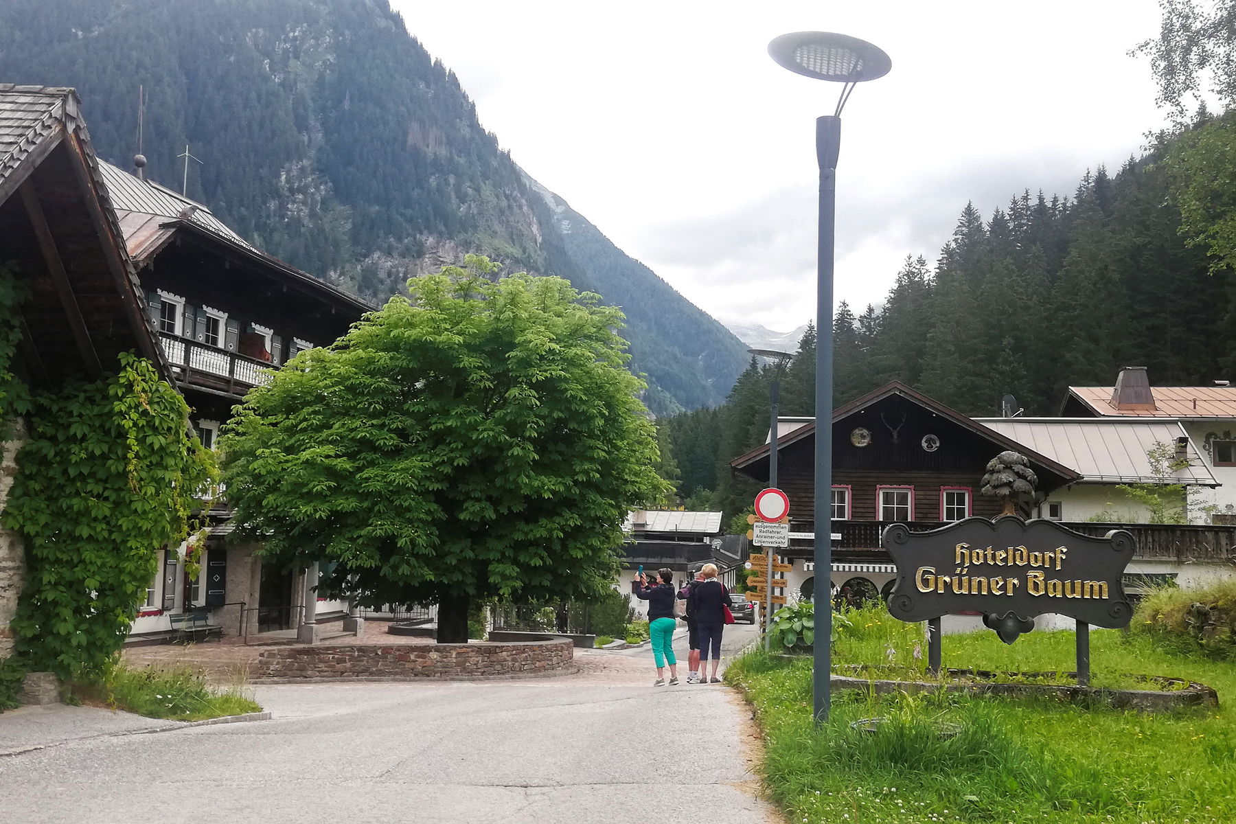 Wir starten unsere Wanderung an der Bushaltestelle „Grüner Baum“ und folgen der asphaltierten Straße tiefer hinein ins Kötschachtal.