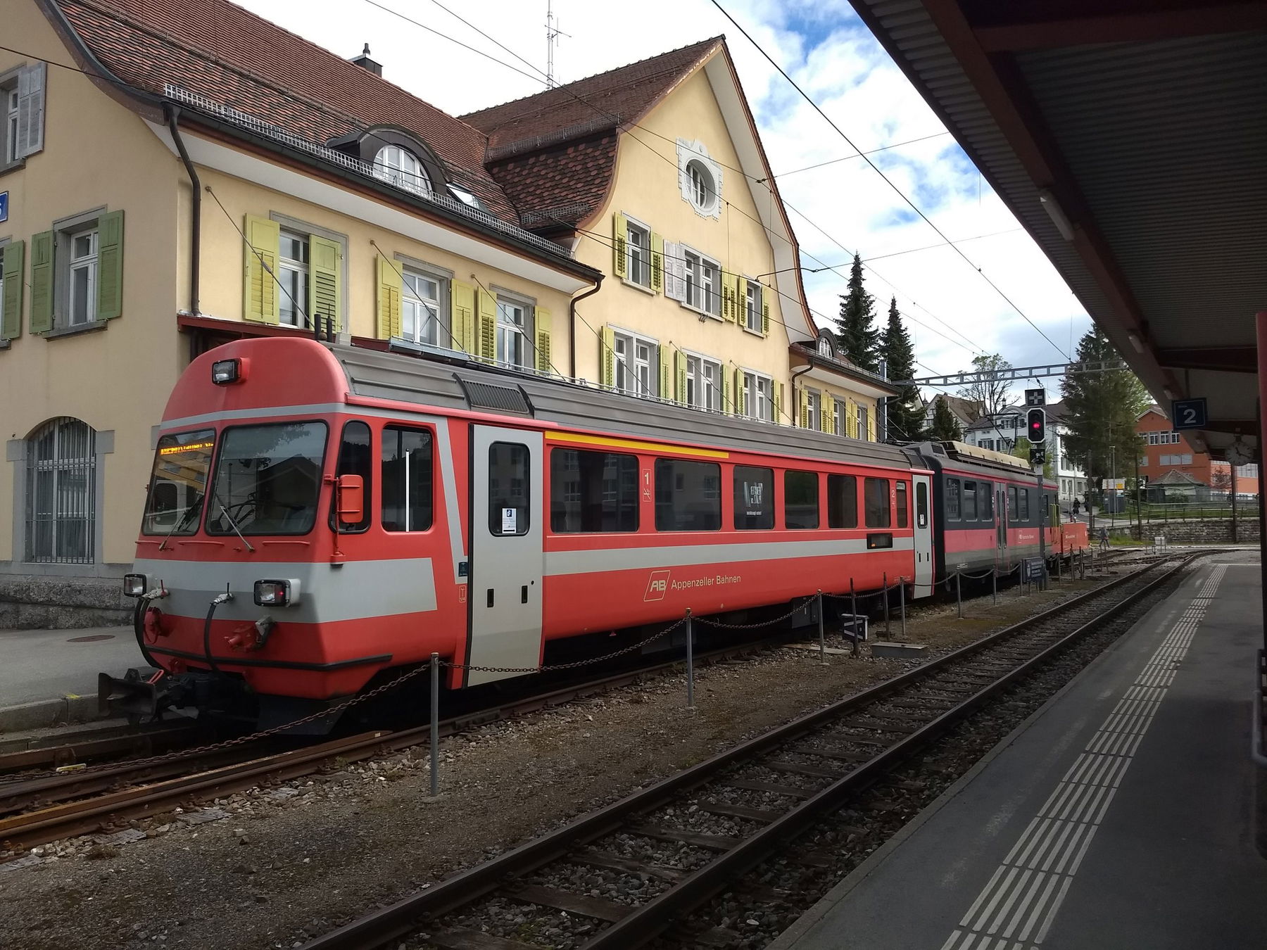 Die Auffahrt mit dieser Bahn ist allein schon die Reise wert. In Gais besteht sofortiger Anschluss an eine weitere Linie der Appenzeller Bahnen in den Hauptort des Kantons.