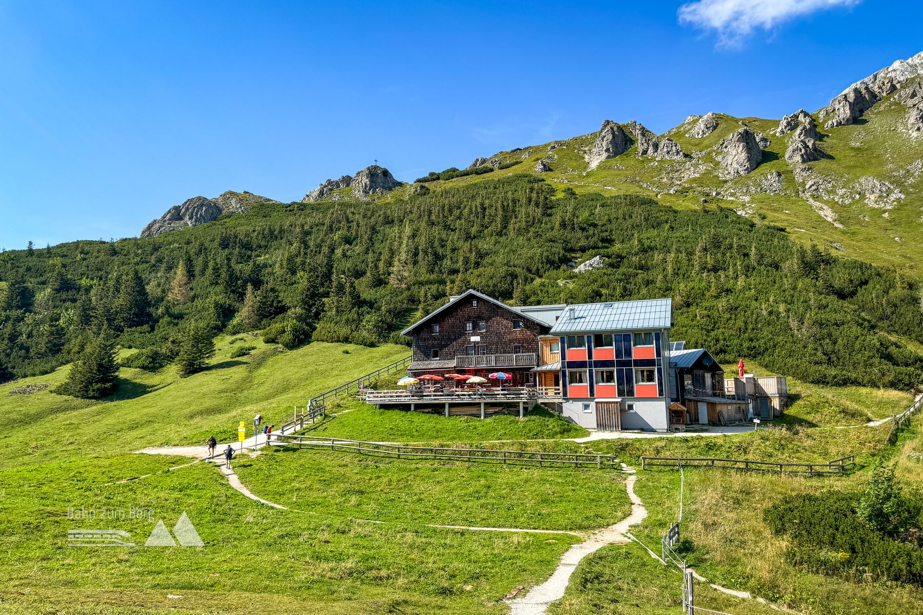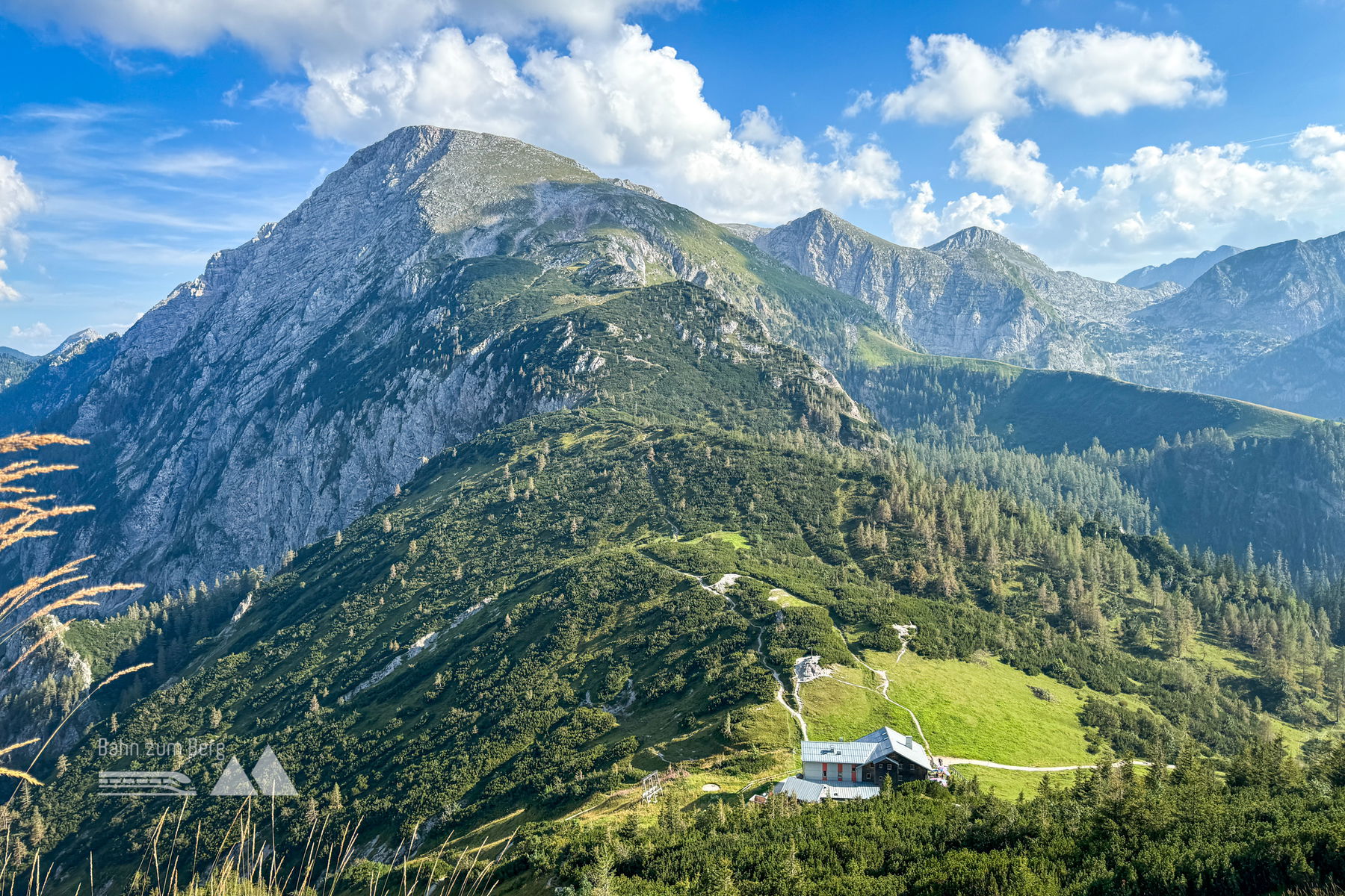 Während man das Schneibsteinhaus früher sieht, steht das Carl-von-Stahl-Haus etwas „hinter“ dem Berg, man sieht es eigentlich erst, wenn man fast dort ist.