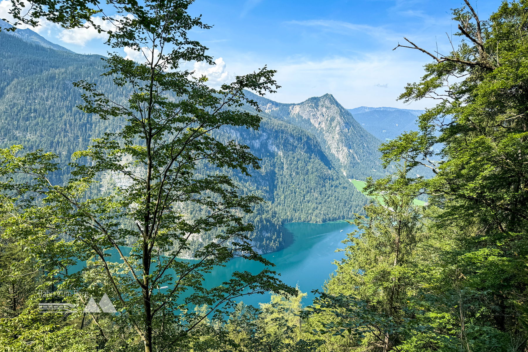 Diesmal geht es nicht mit der Seilbahn sondern zu Fuß zum Königssee. Der Weg ist aber größtenteils unspektakulär und führt durch den Wald. Man wird von vielen Mountainbikern „überholt“. Einen Blick zum Königssee kann man durch die Bäume aber noch erhaschen.