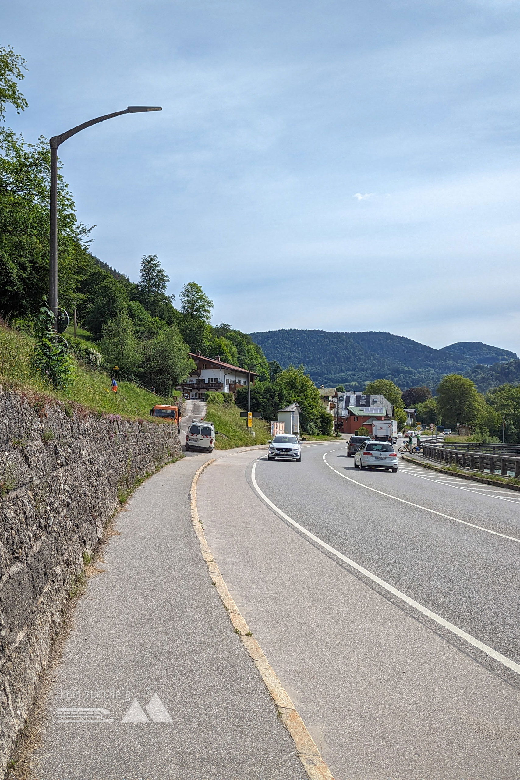 Der anstrengende Teil ist geschafft, nun geht es nur noch zur Bushaltestelle. Wir überqueren nach rechts den Parkplatz und folgen dem Fußweg entlang der Berchtesgadener Ache 500 Meter. Dann überqueren wir den Fluß und kommen, vorbei an einem Gewerbegebiet, nach 300 Metern zur Hauptstraße. Hier ist auch die Endbushaltestelle “Almbachklamm”, die uns je nach Wunsch in Richtung Berchtesgaden oder Salzburg bringt.