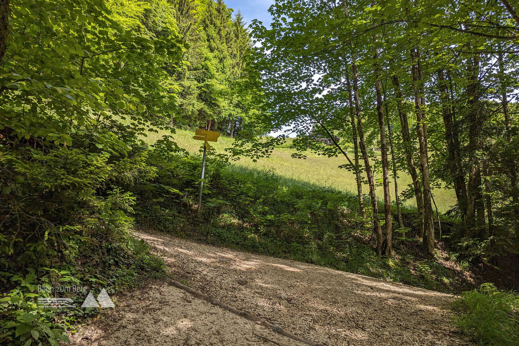 Hier biegt man nach links in einen Waldweg ab. Fotos: Maresa Brandner