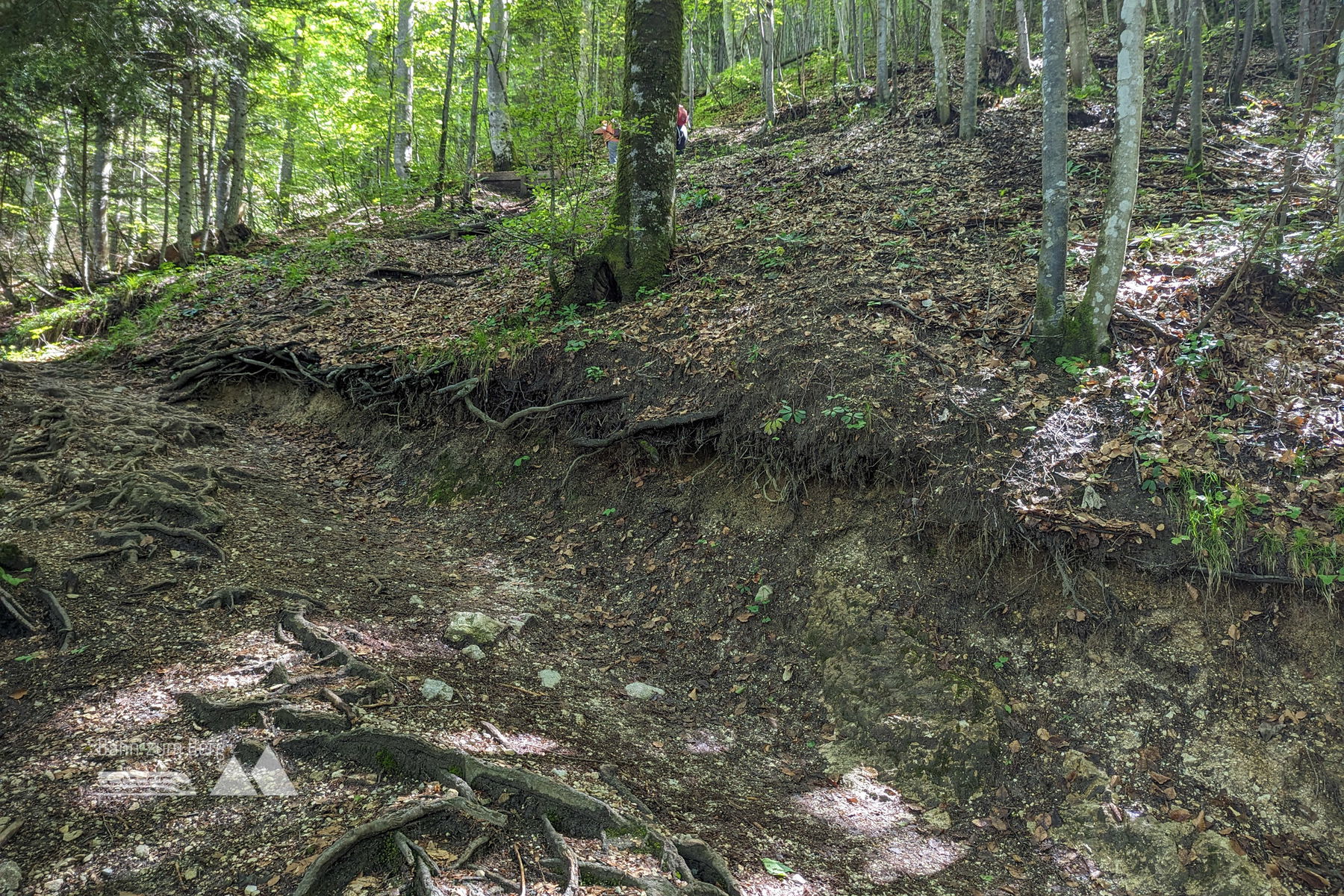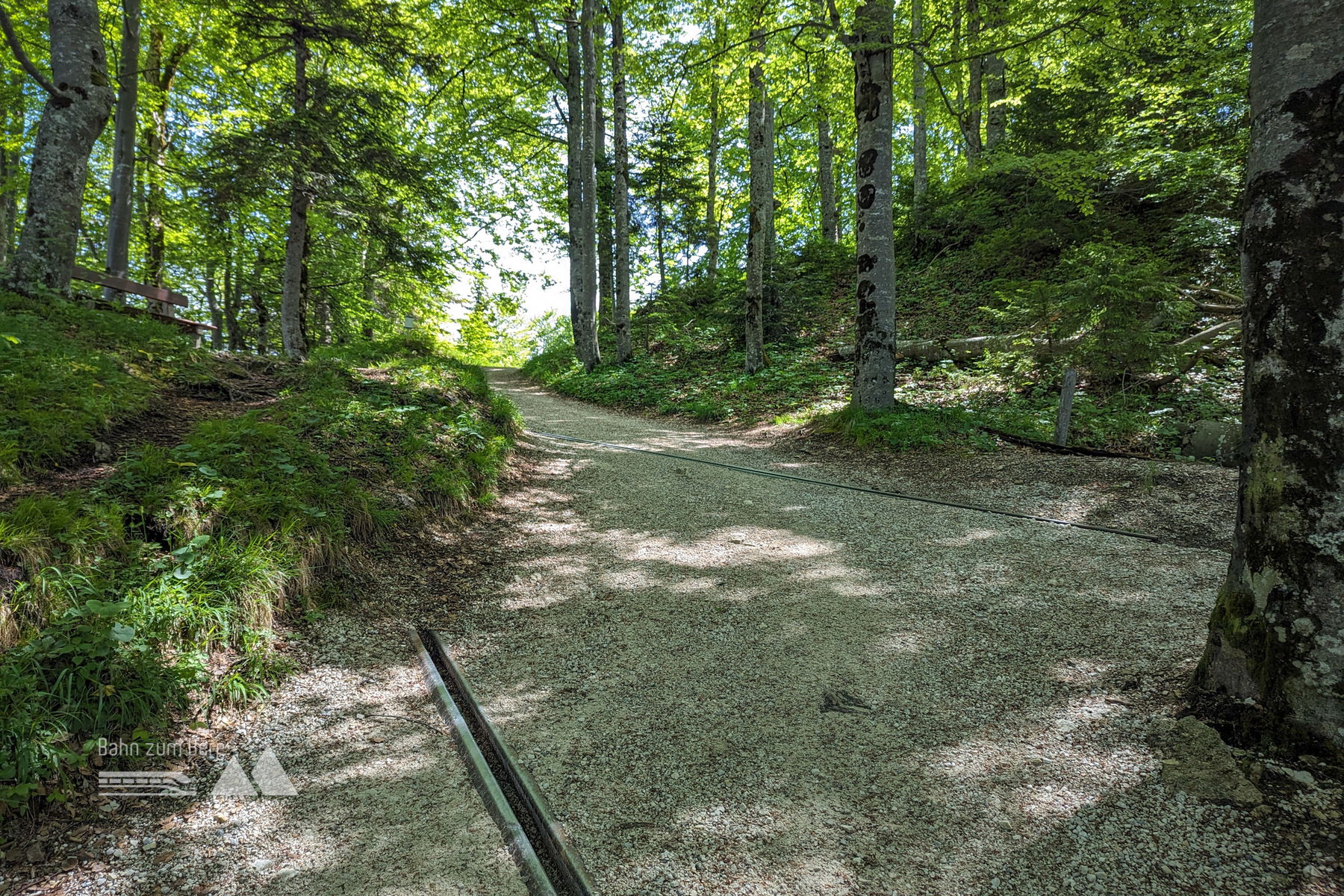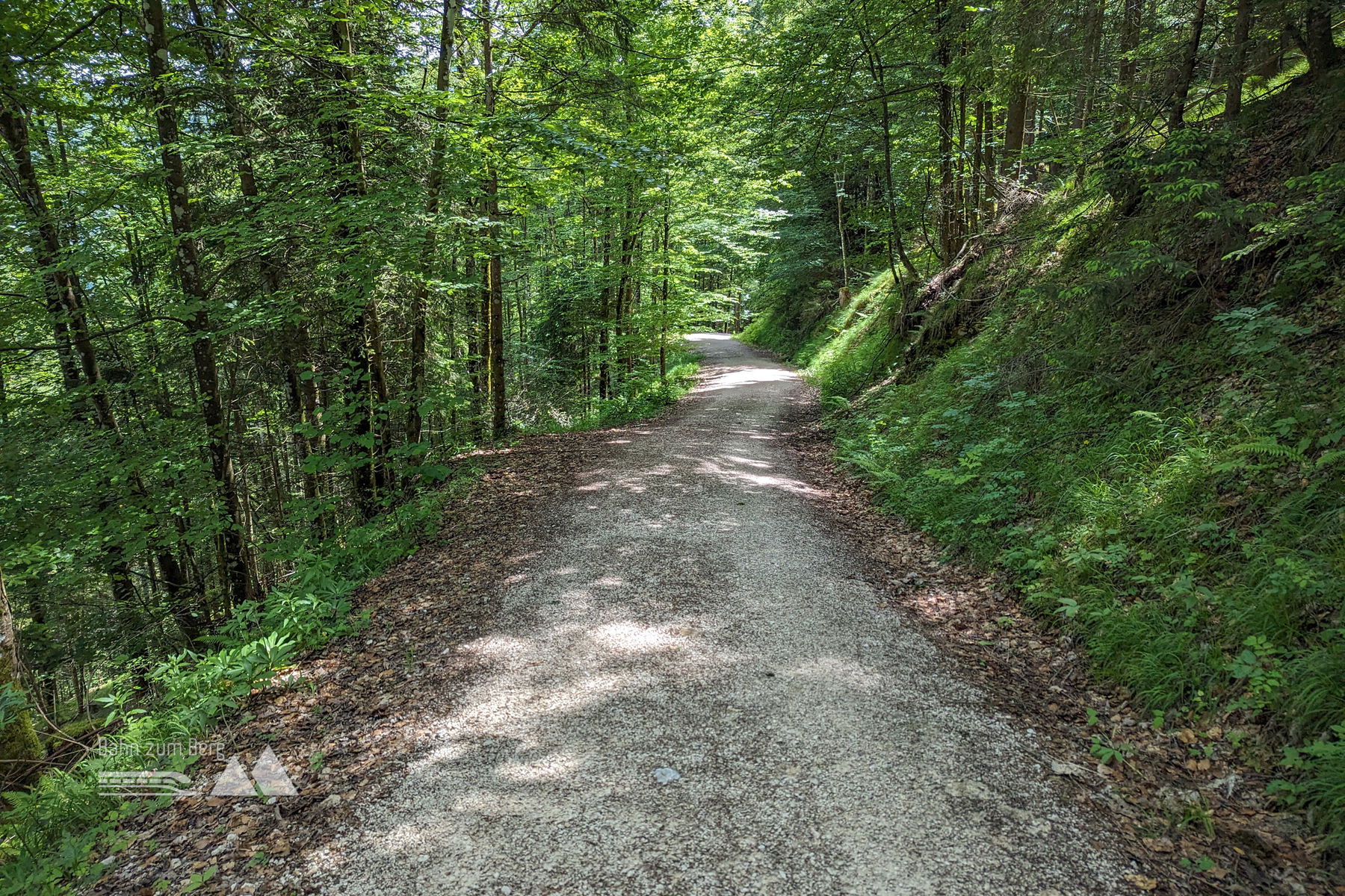 Über relativ flache 100 Höhenmeter folgen wir dem breiten Forstweg, bis es deutlich steiler und wurzeliger nach rechts weiter geht. Hier folgen wir über Serpentinen den Wald hinauf.