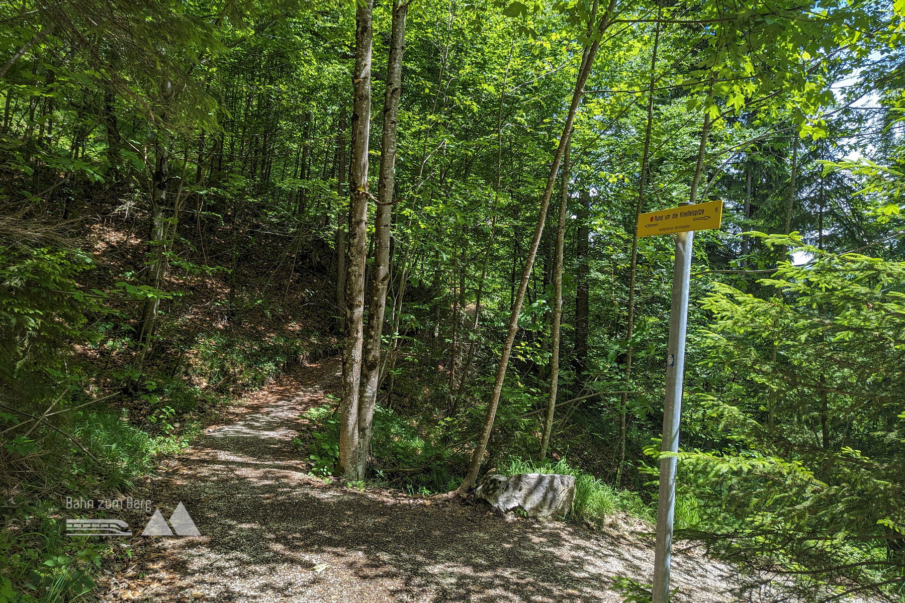 Hier biegen wir nach links in Richtung “Kneifelspitz-Rundweg” ab. Fotos: Maresa Brandner