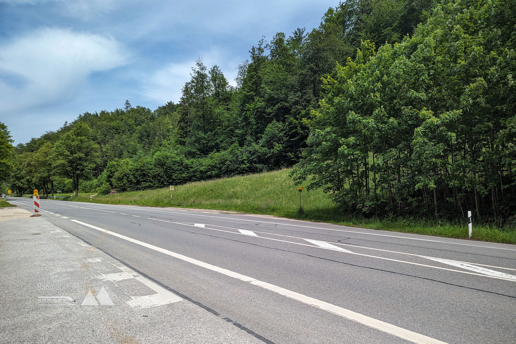 Die nächsten 200hm und einem Kilometer folgen wir der Asphaltstraße, bis nach links ein mäßig steiler Waldweg abzweigt. Diesem folgen wir für gut 100hm. Hier quert man einen kleinen Parkplatz nach links, um sofort wieder nach rechts der Straße zu folgen.