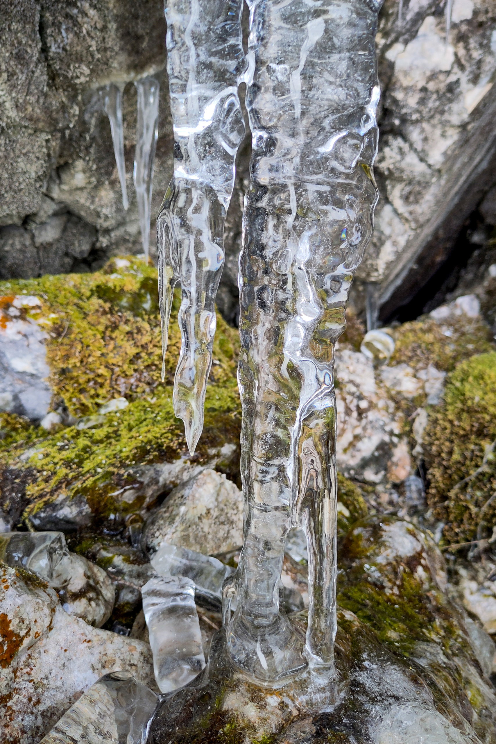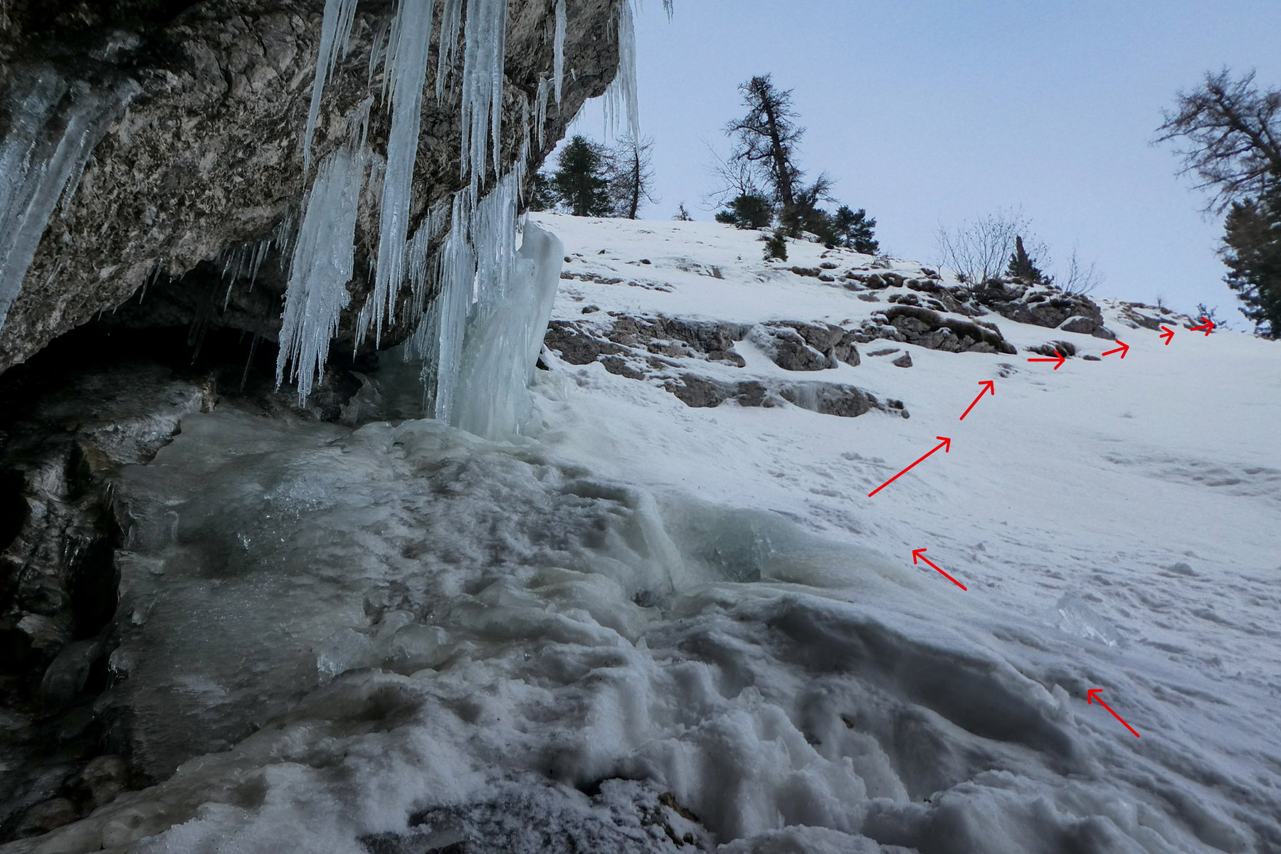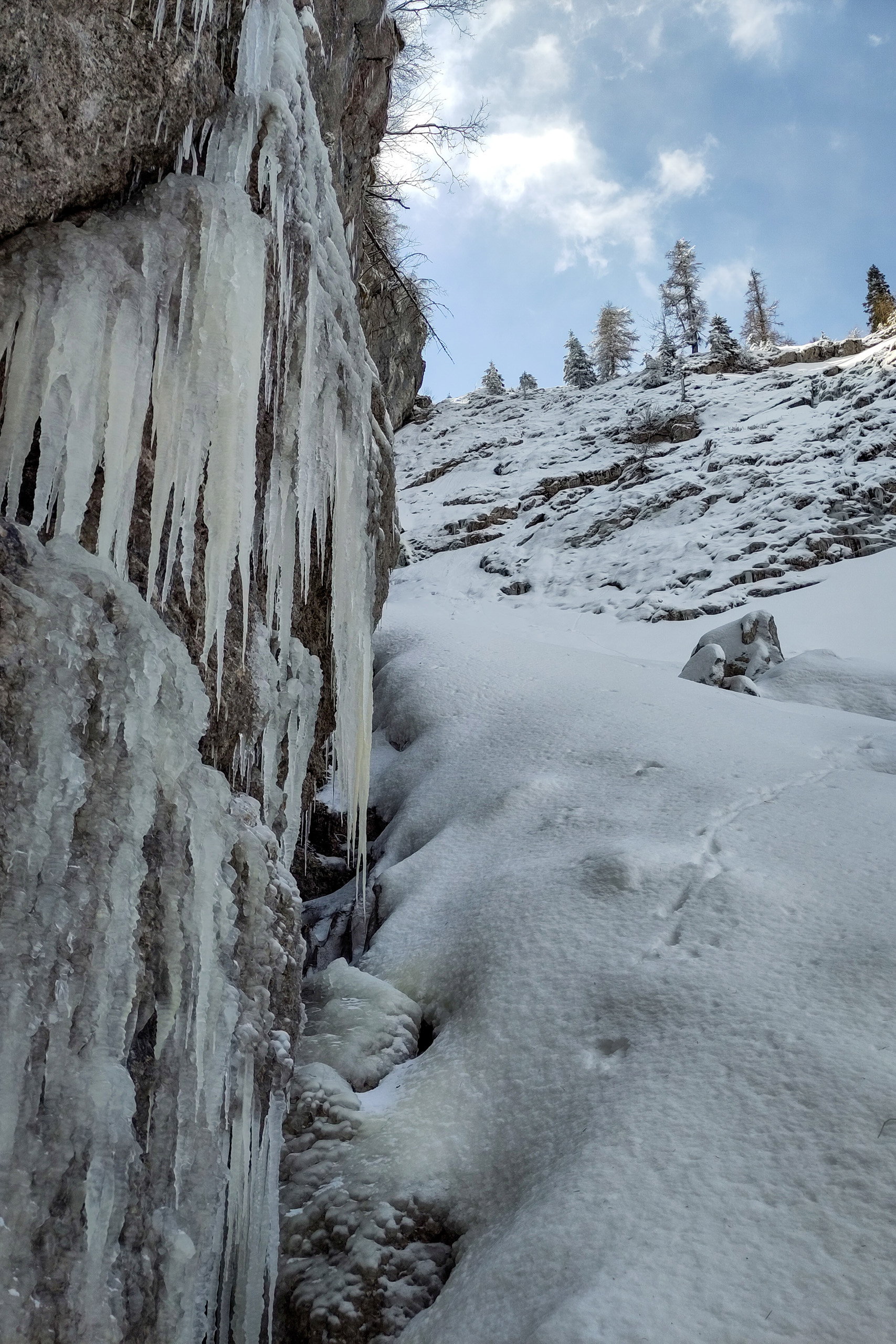 Die Nahumgebung wird immer wilder und prächtiger. Schließlich steht man in einer Eiszapfen-Arena und kann mit sich (oder dem Partner/der Partnerin) die Linie für einen passenden Durchstieg gustieren.