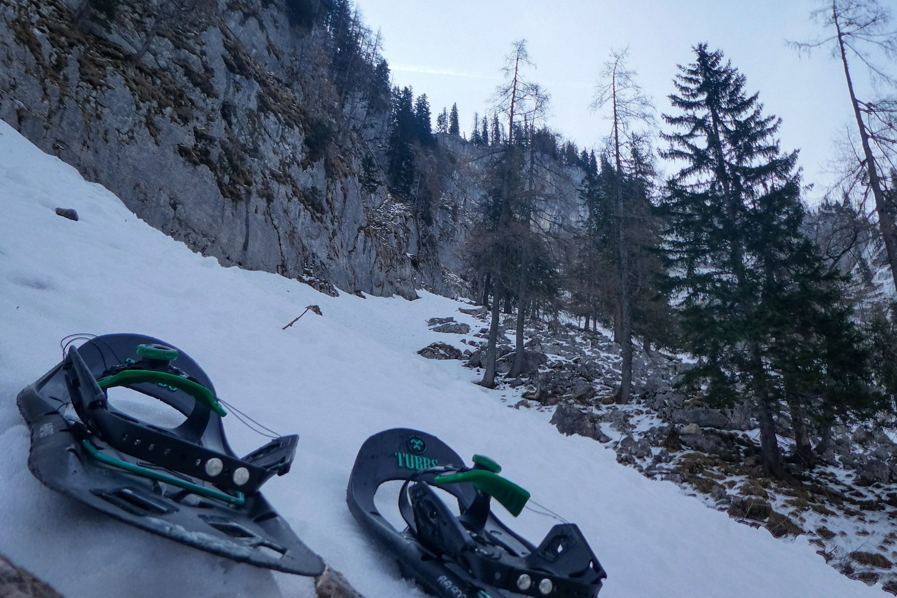 Je weiter man nach Westen kommt, desto länger und tiefer werden die Schneezungen. Irgendwann ist der rechte Ort, um die Schneeschuhe zum Einsatz zu bringen.