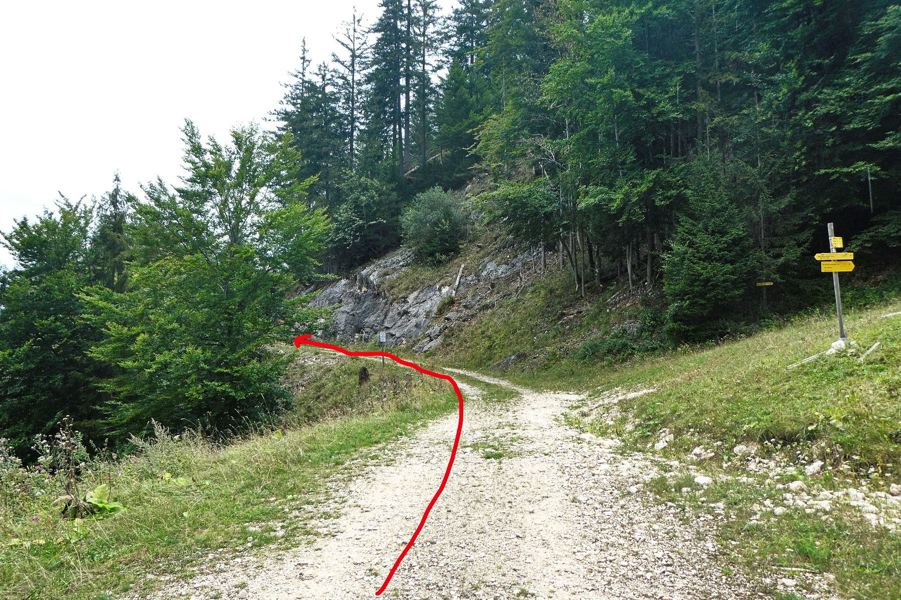 Nun verändert sich der Charakter der Landschaft: der steile Wald weicht dem Flair der Hochfläche. Man folgt der breiten und flachen Skipiste, bis diese nach etwa 10 Minuten scharf nach rechts abbiegt.
