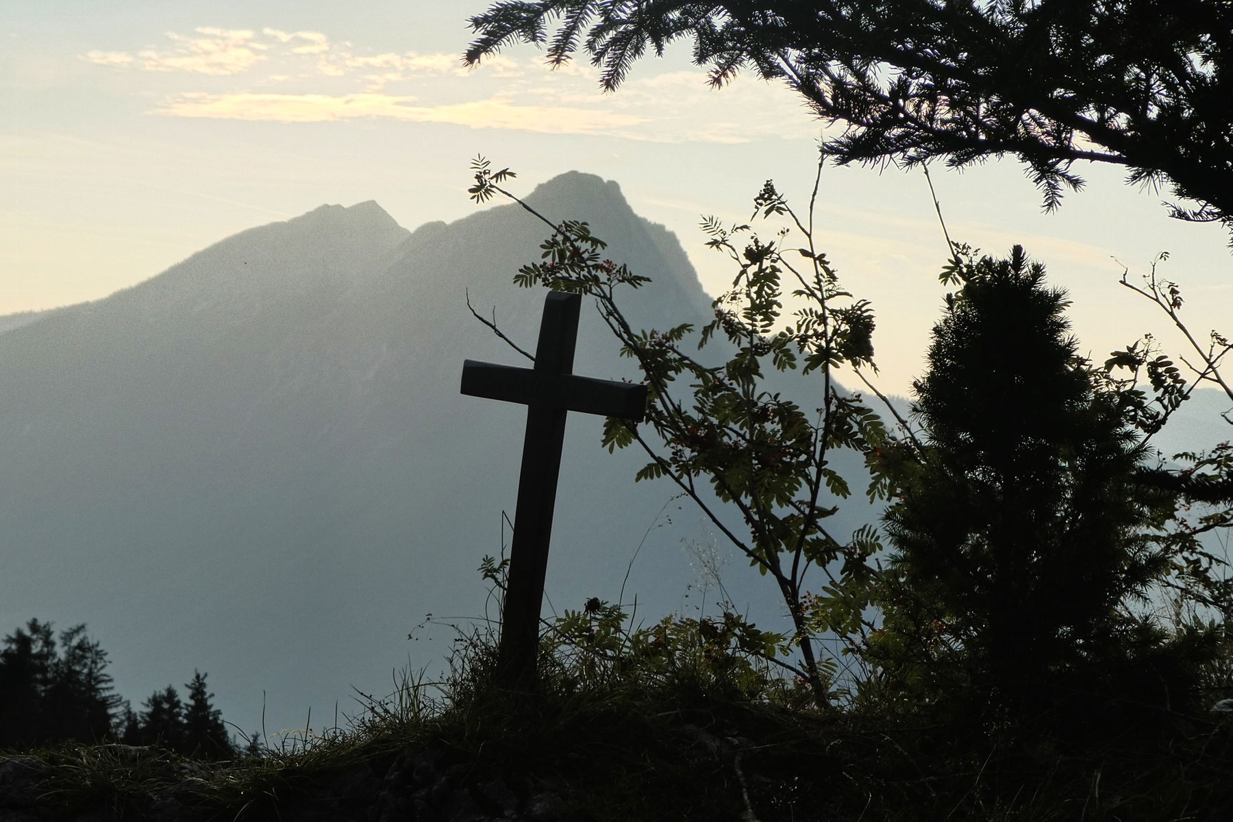 Die Schweigmühlalm (1.406 Meter) mit ihren drei Hütten (der alten, verfallenden Jagdhütte, der nun neu verkleideten und eingezäunten Alm-Jagdhütte und der Bergrettungshütte) und dem nahen Gipfel mit dem „Sonnenscheinkreuz“ (ob des Tiefblicks ins Wasserfalltal – durch das ja auch ein Steig heraufzieht – und des Blicks hinüber zur Klingeralm eines Besuchs wert) erzwingt gleichsam eine Rast.