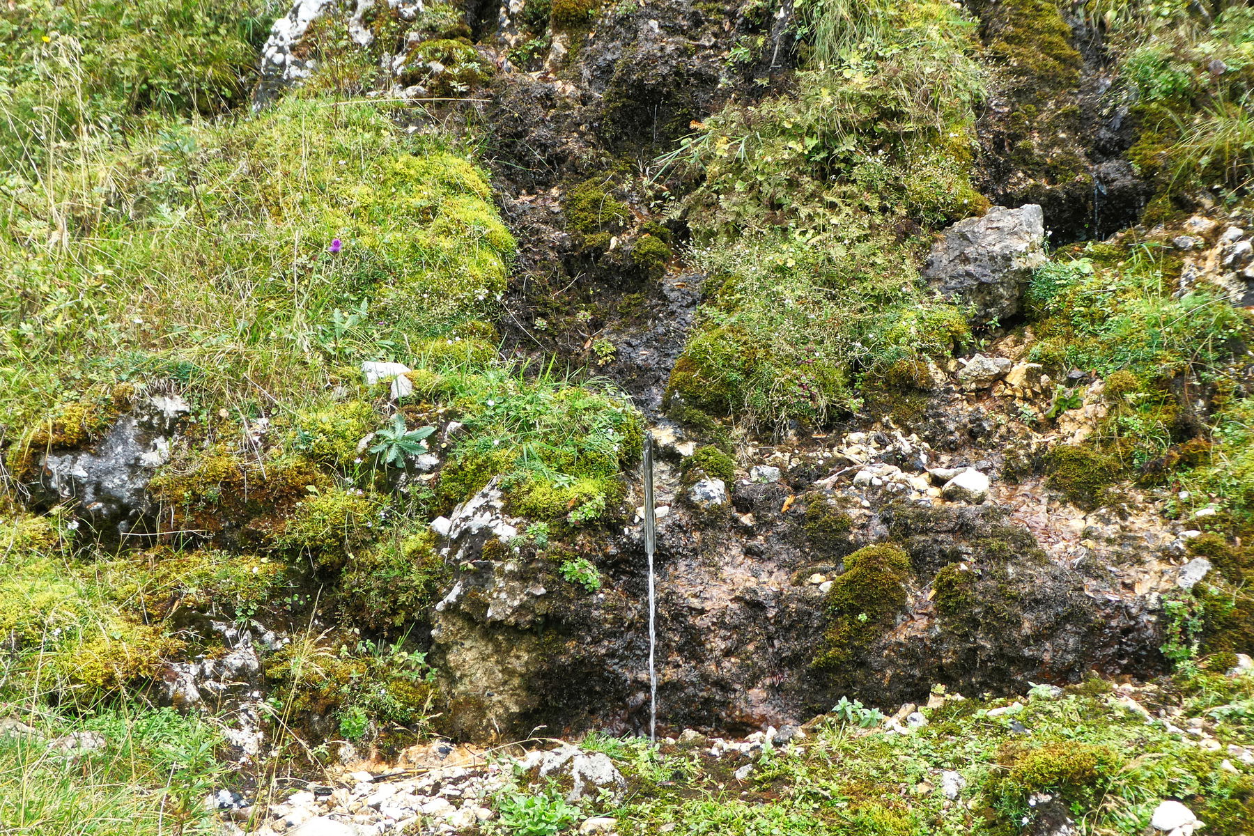 Zu gewissen Jahreszeiten sprudelt am östlichen Wiesenrand verborgen sogar eine Quelle, die seit der sommerlichen Schaf-Beweidung in einen großen Tank geleitet wird. Bis hierher gut 2 ½ Stunden.