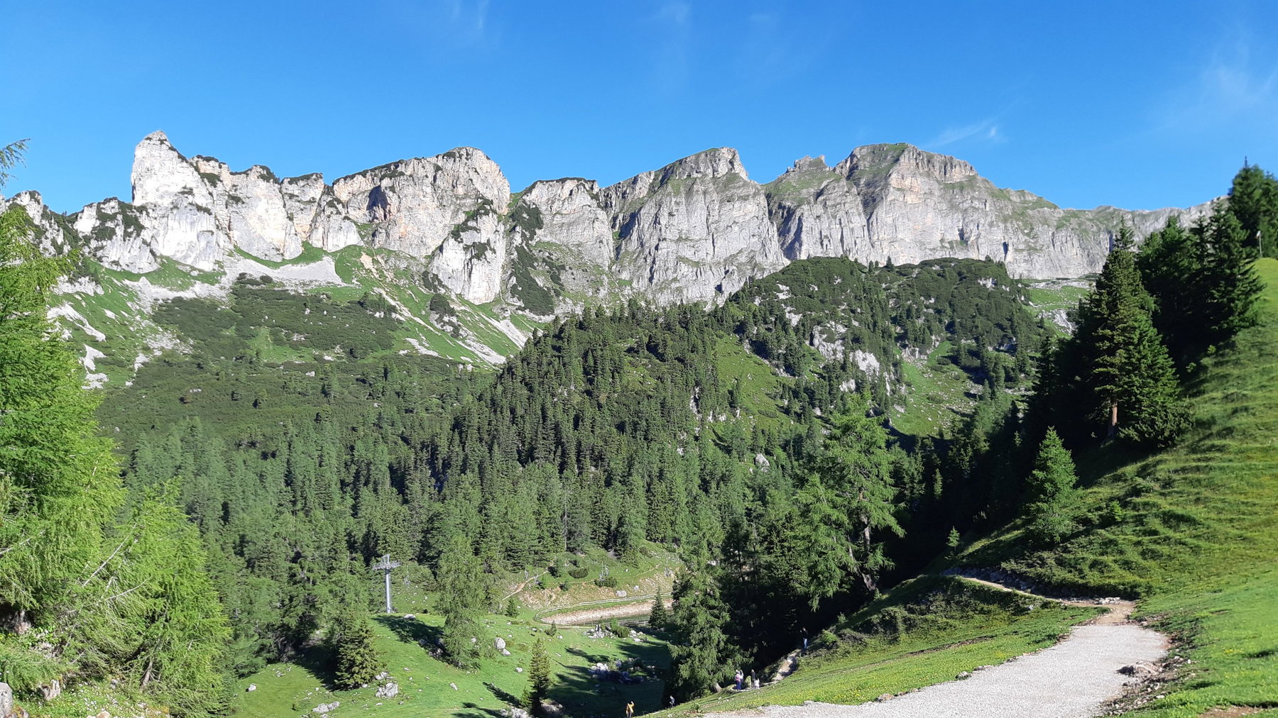 Will man diesen Kraxelabschnitt vermeiden, gibt es auch die Möglichkeit, dass man von der Bergbahn den Weg in Richtung Dalfazalm folgt und von dort die Abzweigung zur Rotspitze nimmt.