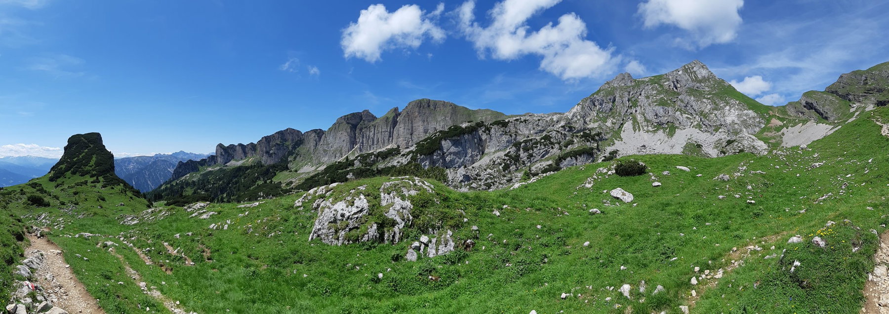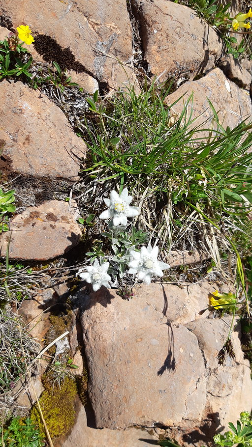 Von der Rotspitze aus wandern wir nach Norden immer in leichtem Bergauf-Bergab über den Dalfazer Kamm. Eine Blütenvielfalt säumt den Weg. Alpendohlen ziehen ihre Kreise, vereinzelt auch Raubvögel.