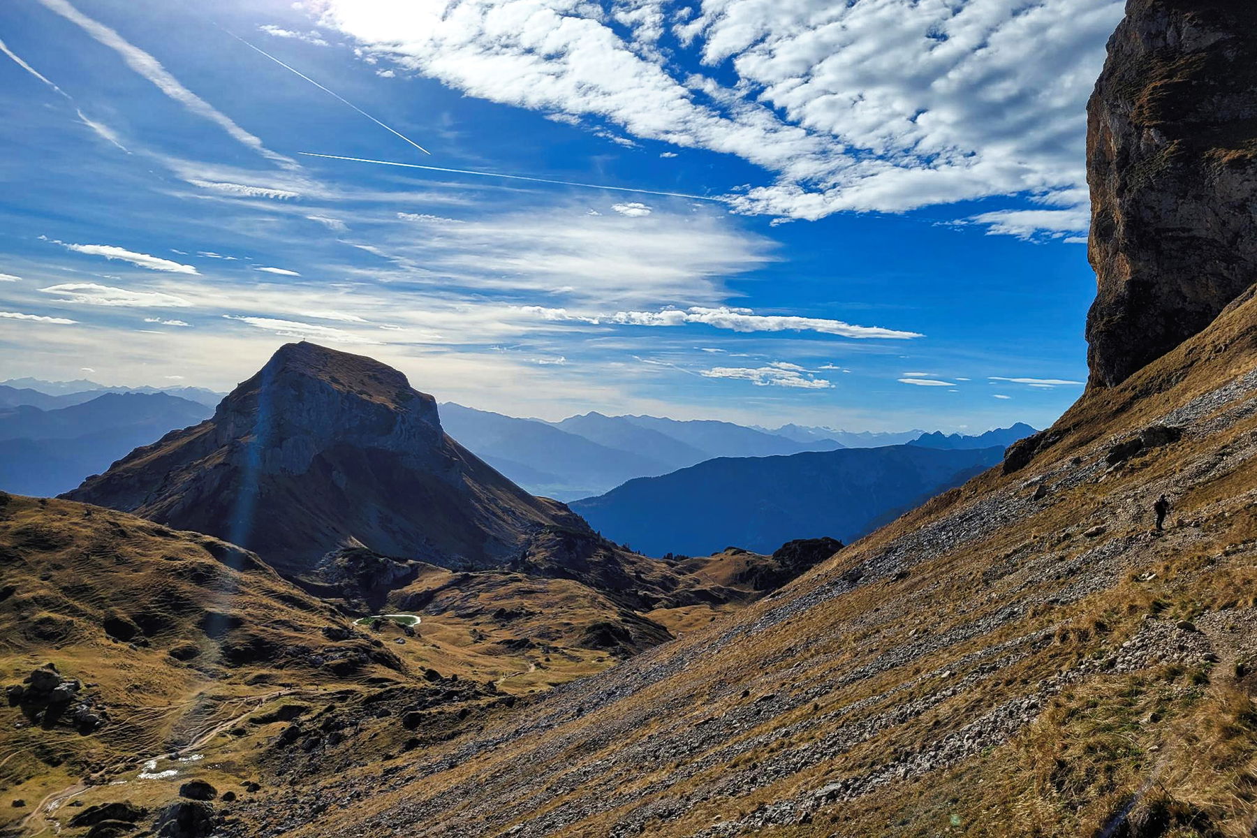 Die Rofanspitze (2.259 Meter) ist ein toller Panoramaberg in (fast) alle Richtungen mit einem herrlichen Bergsee, dem Grubersee. Ich mag besonders die Möglichkeit, einen Rundweg zu gehen rundum das vielgliedrige plateau-ähnliche Rofangebiet mit Einkehrmöglichkeiten an der Rofan-Seilbahnbergstation. Die Tour ist super erreichbar mit den Öffis ab München und Rosenheim: Als Tagestour oder auch mit Übernachtung auf der gemütlichen Erfurter Hütte, die direkt neben der Bergstation der Seilbahn liegt und von wenigen Wochen abgesehen ganzjährig geöffnet hat. Wenn man zwei Tage Zeit hat, kann man natürlich auch statt der Seilbahn zu Fuß auf und/oder absteigen, das sind dann 800 Höhenmeter mehr.