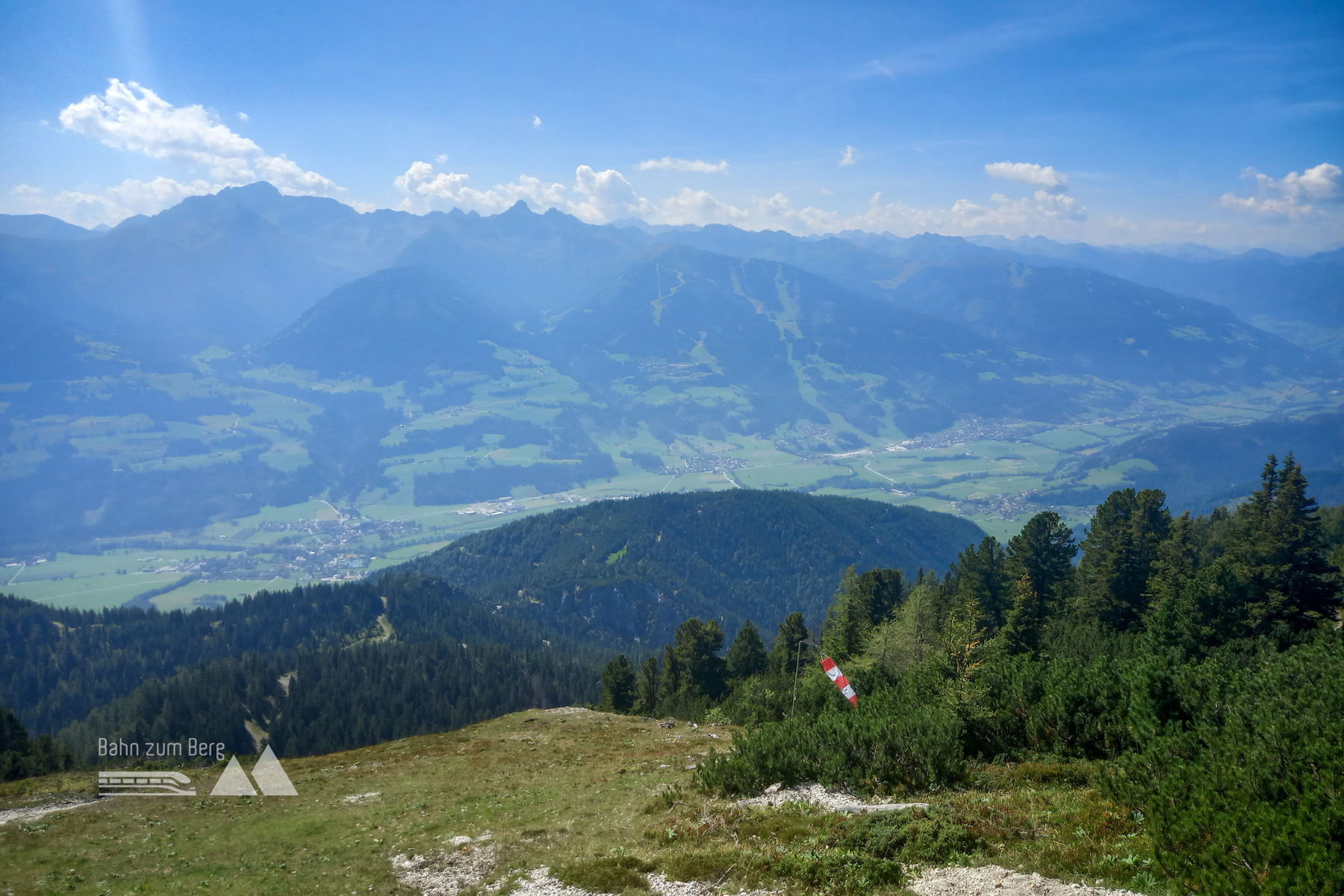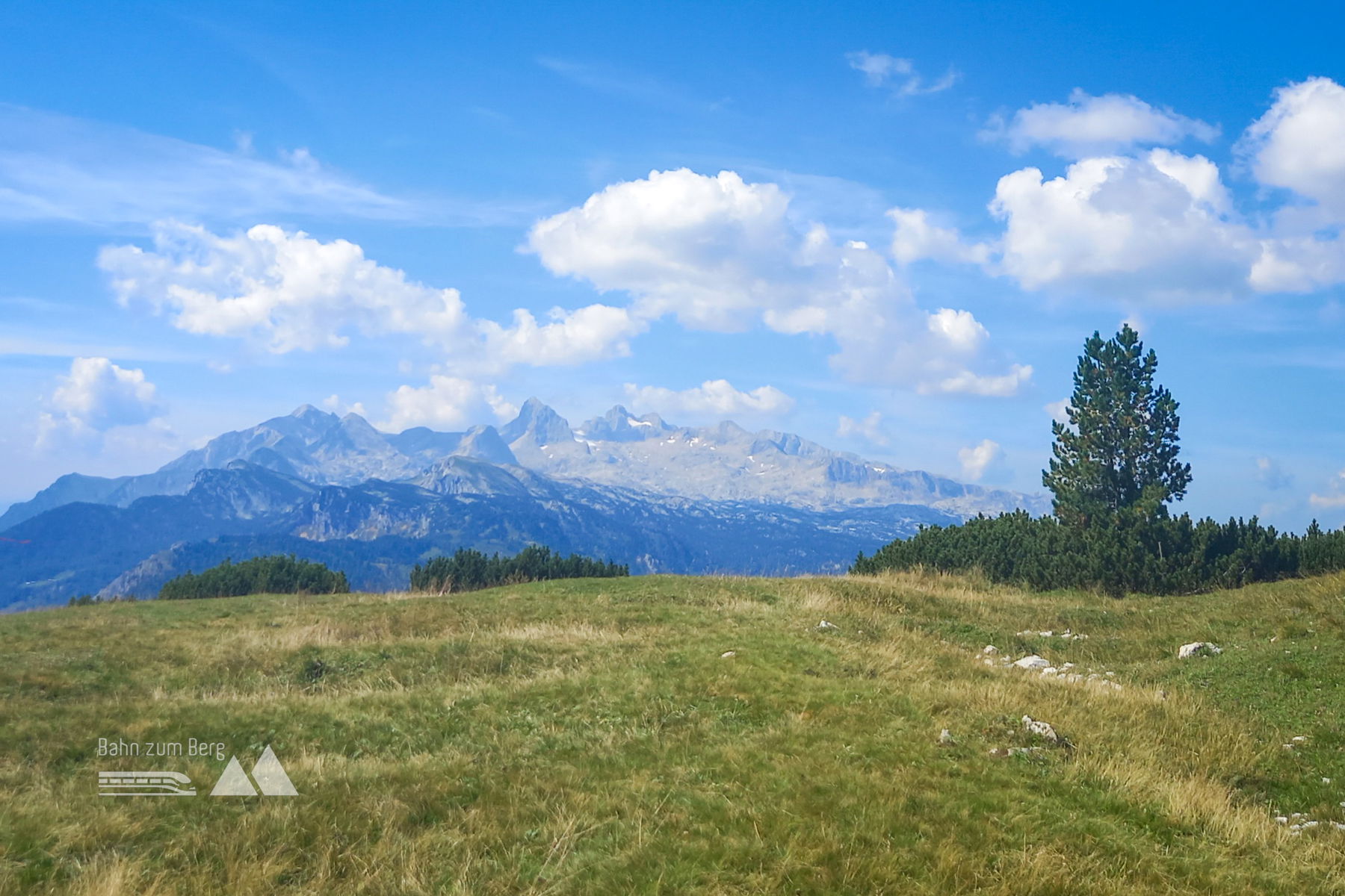 Beim Abstieg folge ich, das Dachsteinmassiv stets vor Augen, dem Normalweg zurück zu den Parkplätzen beim Steinerhaus. Vorbei am Roseggerdenkmal erreiche ich nach 30 Minuten mein Rad und nach weiteren 45 Minuten den Bahnhof Gröbming.