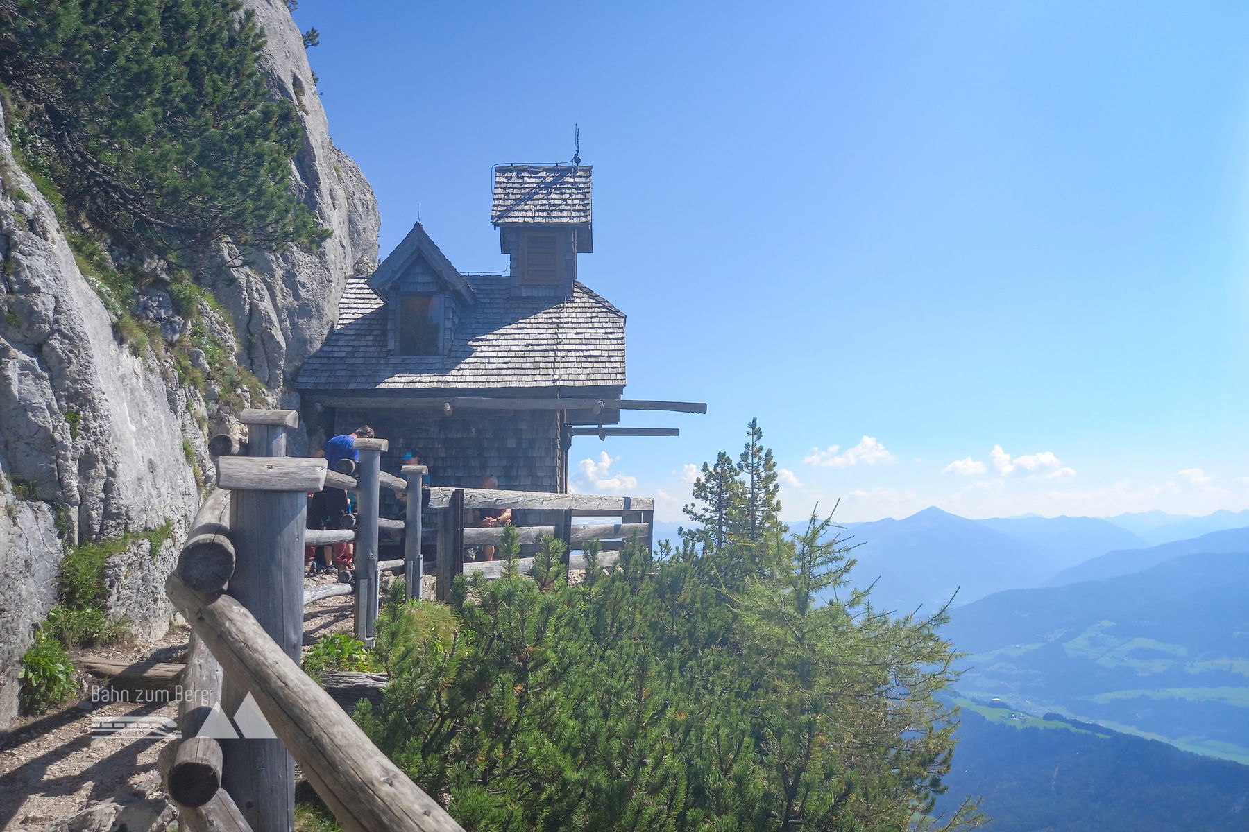 Mein nächstes Ziel ist das bekannte Friedenskircherl, wo sich auch der Einstieg zum Klettersteig befindet. Quasi als Startschuss für die anschließende Kletterpartie läute ich pünktlich um 12 Uhr die Glocke. Ich verweile allerdings noch ein wenig, esse eine Kleinigkeit und lege in aller Ruhe mein Klettersteigset an.