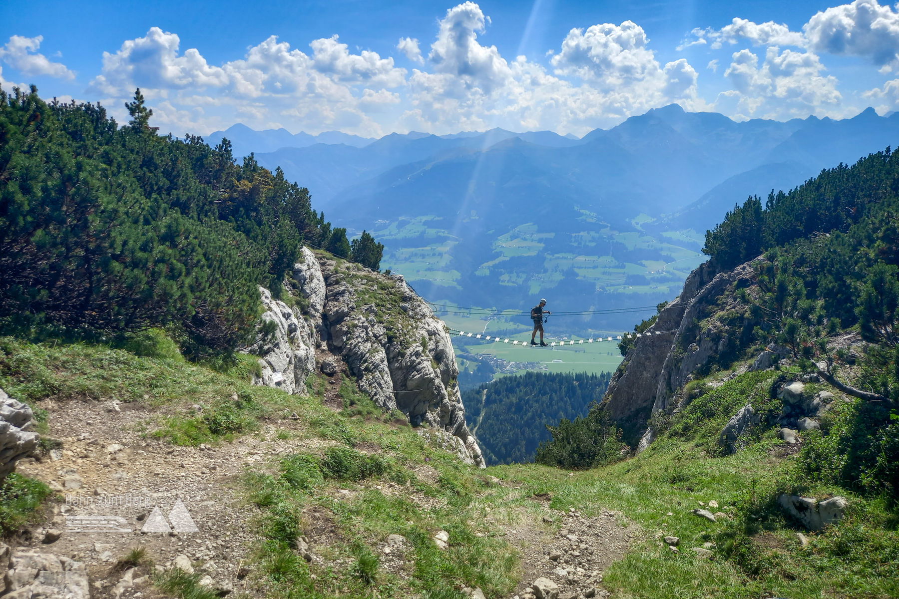 Ein schöner und abwechslungsreicher Klettersteig, teilweise doch recht ausgesetzt, führt mich hinauf. Im Nachhinein erscheinen mir einige Passagen im Schwierigkeitsgrad A/B aber doch schwieriger als erwartet.