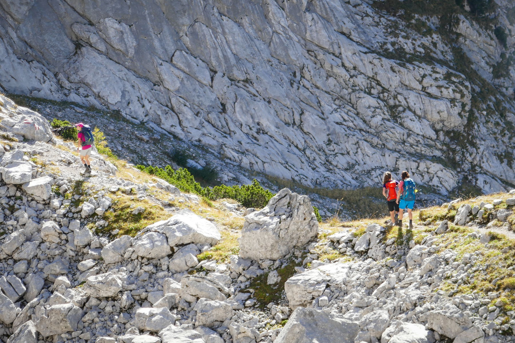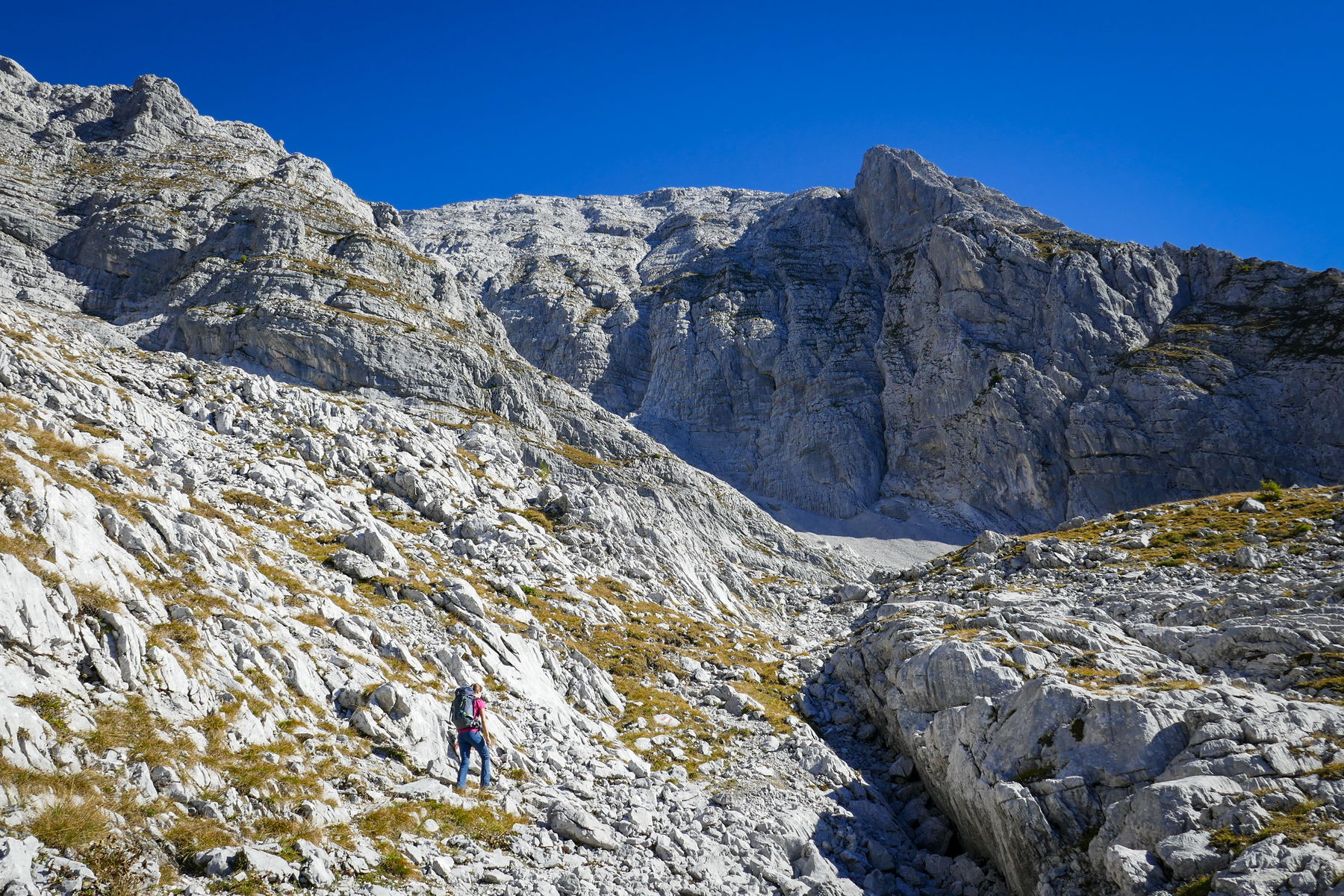 Der erste Teil des Abstiegs ist nicht minder herausfordernd. Der Josefinensteig ist ebenfalls ein alpiner Steig (stellenweise seilversichert), der höchste Konzentration erfordert. Da das Hochtor ein absoluter Klassiker ist, wird es – insbesondere wochenends bei Schönwetter – häufig begangen.