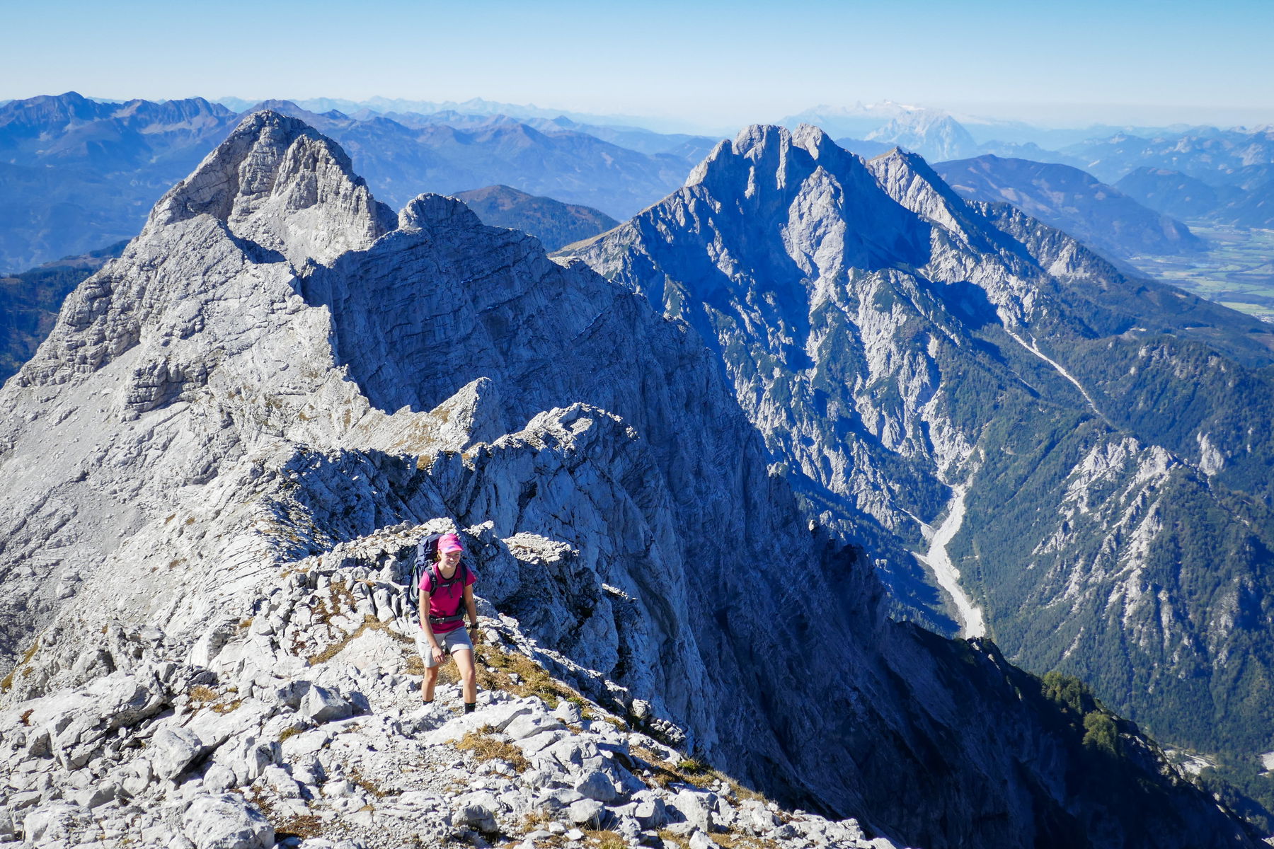 Das Hochtor ist mit 2.369 Metern der höchste Gipfel im Gesäuse und alleine deshalb schon einen Besuch wert. Der anspruchsvolle Aufstieg über das Schneeloch macht diese Tour zu einem einzigartigen Erlebnis. Im Abstieg geht es über den Josephinensteig zur Hesshütte. Nach einer Übernachtung ebendort folgt am nächsten Tag der zweite Teil der Überschreitung: Übers Zinödl geht es Richtung Enns hinunter.