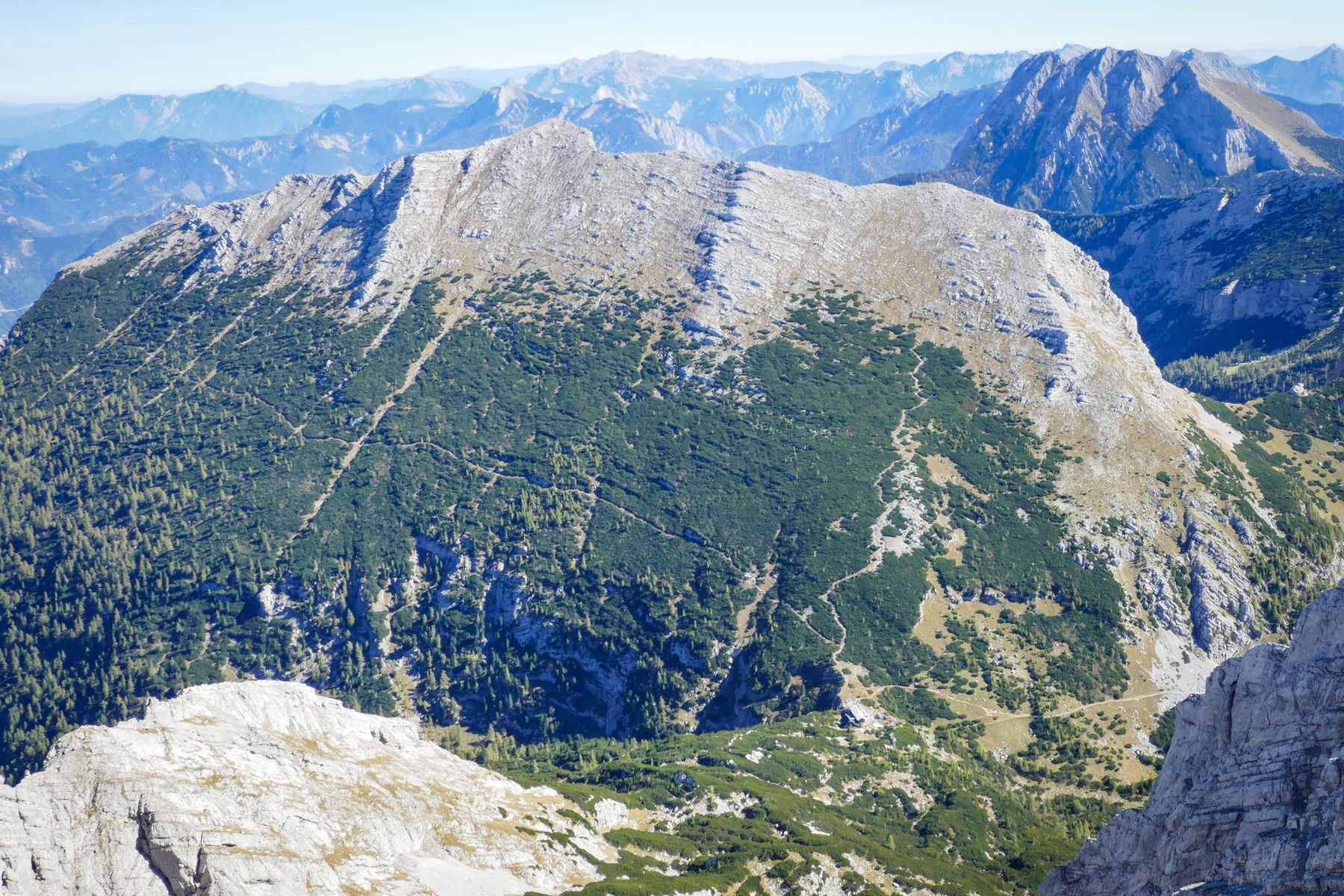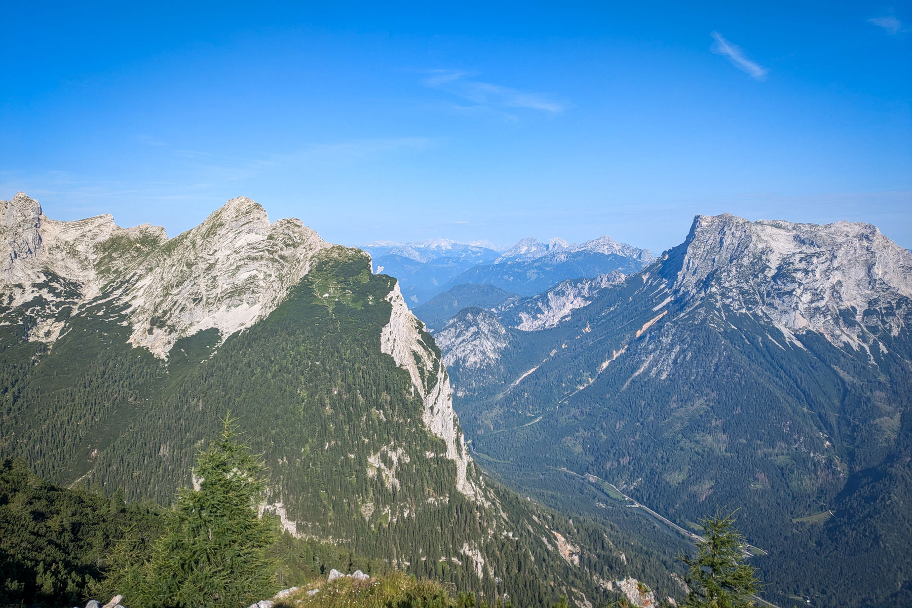 Nachdem ein Tag ohne Gipfel bekanntlich ein verlorener ist (zumindest im Gesäuse), nehmen wir uns für den zweiten Tag zusätzlich zum eigentlichen Abstieg noch das Zinödl vor. Dieser Berg ist vergleichsweie einfach zu besteigen. Gleich nach der Hütte zweiteilt sich der Weg, beide Varianten führen aufs Zinödl. Wir ziehen den Panoramaweg dem Direktanstieg vor. Man legt dabei zwar einige Kilometer mehr zurück, doch das Panorma ist den “Umweg” wirklich wert. Vor allem der Anblick von Hochtor und Planspitze ist lohnend.