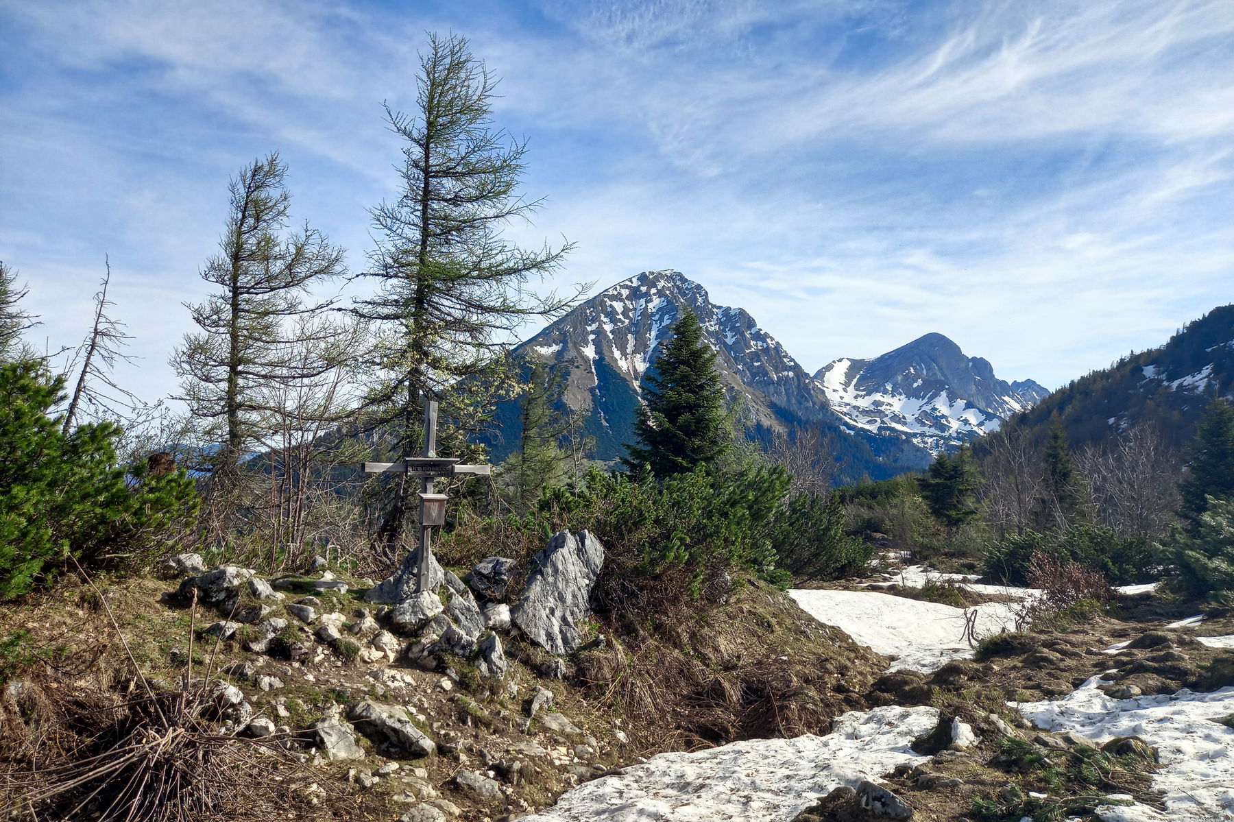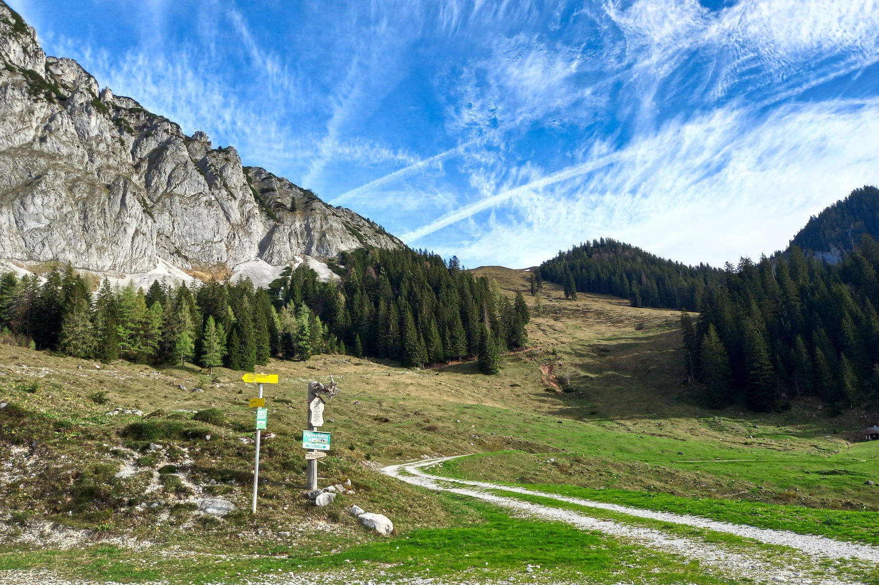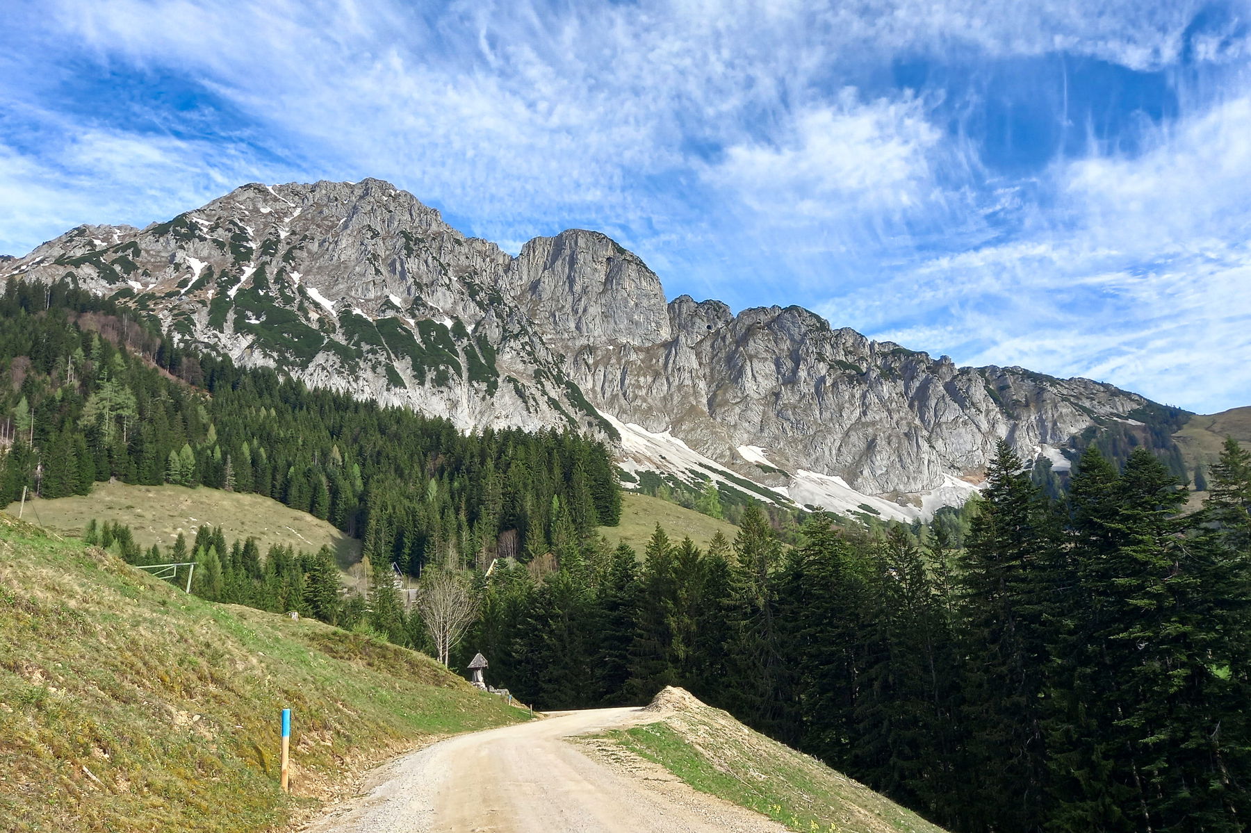 Weitläufige Wiesen und unzählige Hütten prägen den Charakter dieser Alm. Schon beim schattigen Aufstieg zur Alm beeindruckt mich der Blick zum Großen Pyhrgas und zum Scheiblingstein. Kurz vor den ersten Almhütten erblicke ich den mächtigen Bosruck. Er markiert die Grenze zwischen Oberösterreich und der Steiermark.