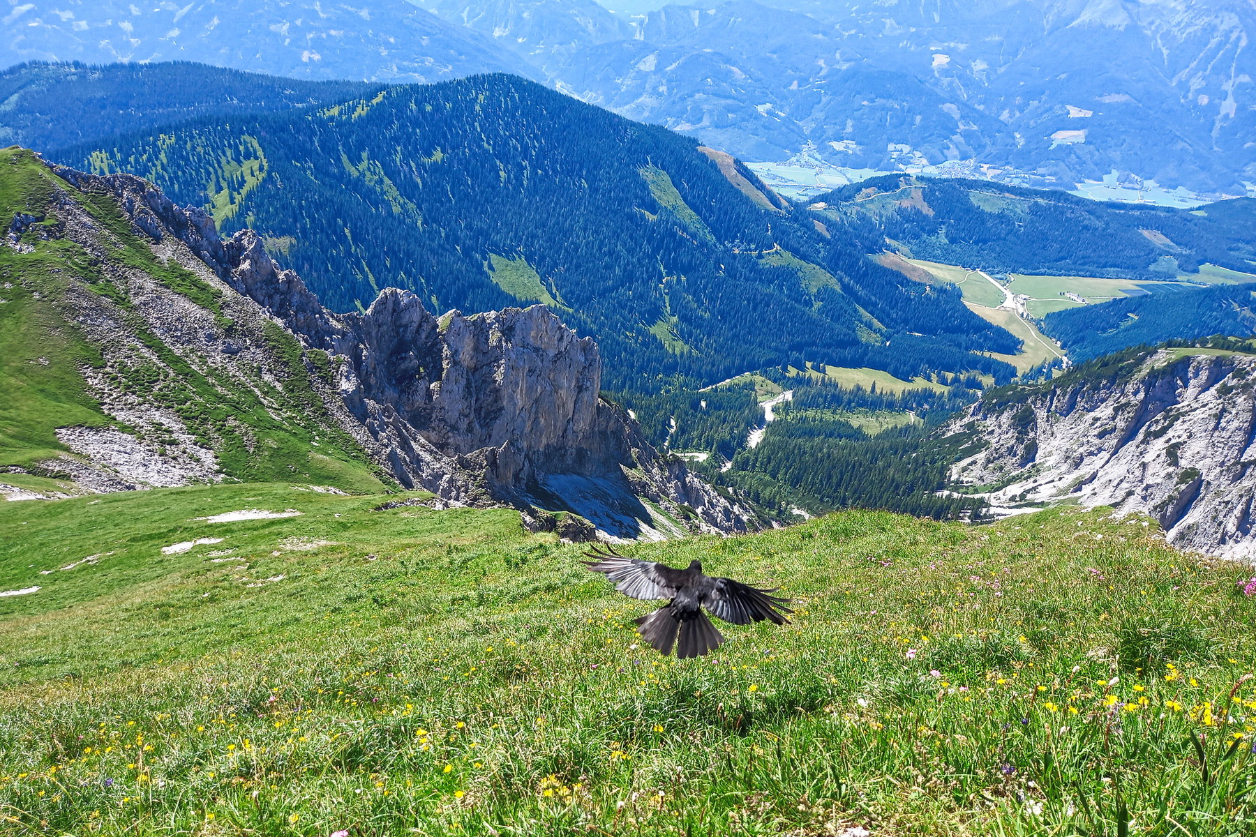 Links: Dohle. Rechts: Großer Buchstein (links), Tamischbachturm (in der Mitte). Fotos: Martina Friesenbichler