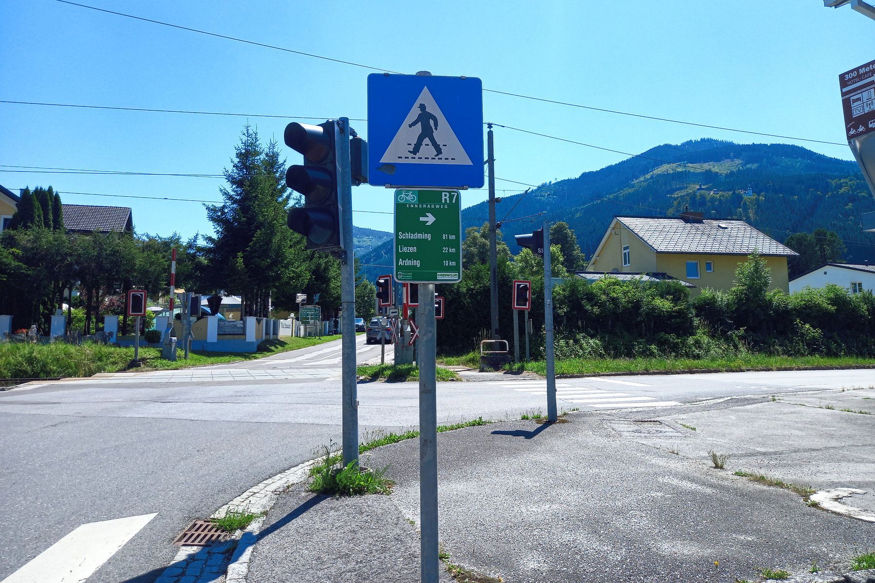 Kurz nach 7 Uhr bin ich Rottenmann. Niemand sonst steigt ein oder aus. Irgendwo im Nirgendwo, denke ich… und mach mich auf die Suche nach dem R15 Rastlandradweg, dem ich dann bis Bärndorf folge.