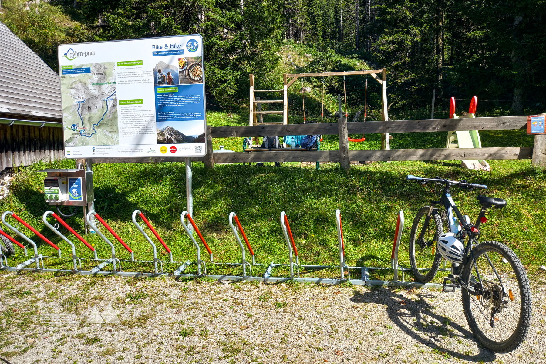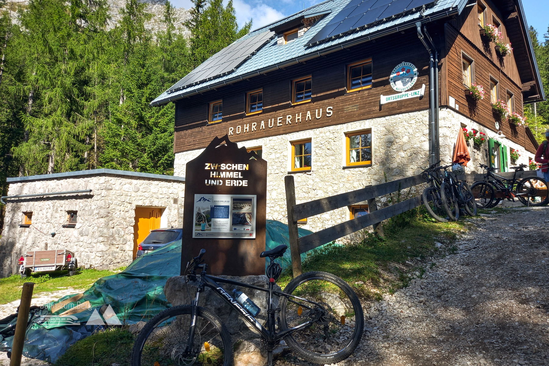 Vorbei am Ausstieg der Dr. Vogelgesang Klamm und der Bosruckhütte erreiche ich nach knapp 90 Mintuen die Wechselstation beim Rohrauerhaus, bei der ich mein Rad sicher abstellen kann. Die Straße ist gut befahrbar und führt mich mit angenehmer Steigung und noch wenig Autoverkehr zu meinem ersten Etappenziel.
