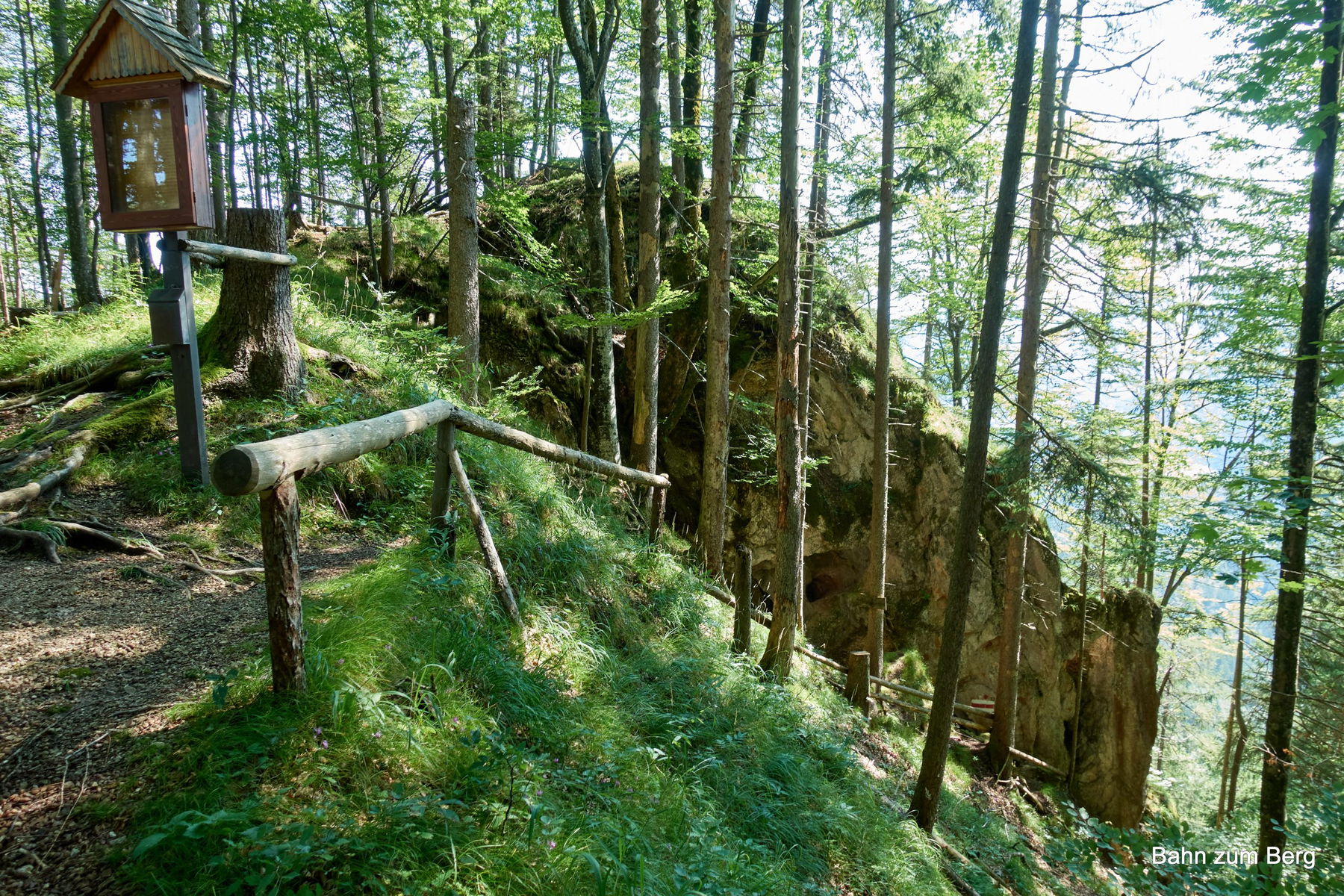 Waren wir zuerst länger auf der Asphaltstraße unterwegs, folgten wir im Wald dann einem breiten Forstweg. Schließlich steilt es auf und wir verlassen die Forststraße um auf einem gut sichtbaren Wanderweg zur Teufelskirche hinauf zu gehen.