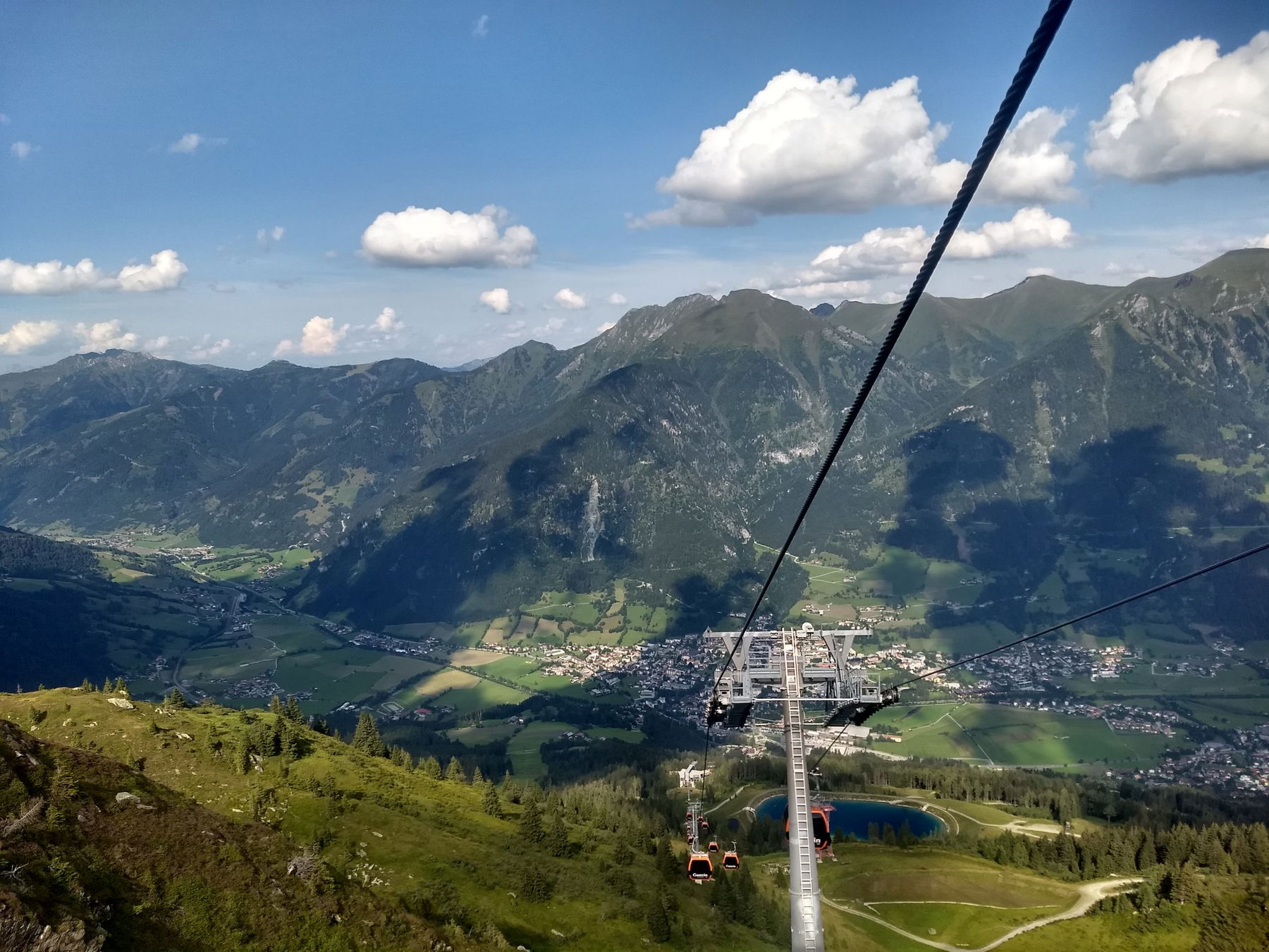Schon in den ersten Metern des sehr gepflegten und gut versicherten Klettersteigs geht es richtig zur Sache und die erste Stelle der Schwierigkeit C muss überwunden werden. Der Steig führt in verschiedenen Schwierigkeiten (maximal C) rasch bergan und endet nach etwa 45 Minuten Gehzeit auf einem Gratvorsprung. Ohne Versicherung in einfachem Gehgelände strebt der Weg nun zunächst dem Gipfel der Mauskarspitze zu. Bei einer beschilderten Abzweigung geht es links und einige Meter bergab in Richtung der Bergstation eines winterlichen Doppelsessellifts. Kurz bevor man diese erreicht, zweigt rechtsseitig der gut sichtbare Klettersteig „Mauskarspitze“ ab. Auch dieser Klettersteig weist maximal die Schwierigkeit C auf. Highlight ist hier sicher die etwa 25 Meter lange Seilbrücke, auf welcher eine steile Rinne überwunden wird. Hier heißt es besser nicht nach unten schauen… Nach der Brücke zieht der Steig wieder rasch bergan und erreicht letztlich den bereits lang sichtbaren Gipfel der Mauskarspitze. Die Rundumsicht ist hier gigantisch. Im Süden grüßt die Ankogelgruppe in den Hohen Tauern, im Norden Hochkönig, Tennengebirge und Dachstein, rundherum die Grasberge, welche das liebliche Gasteinertal umrahmen.