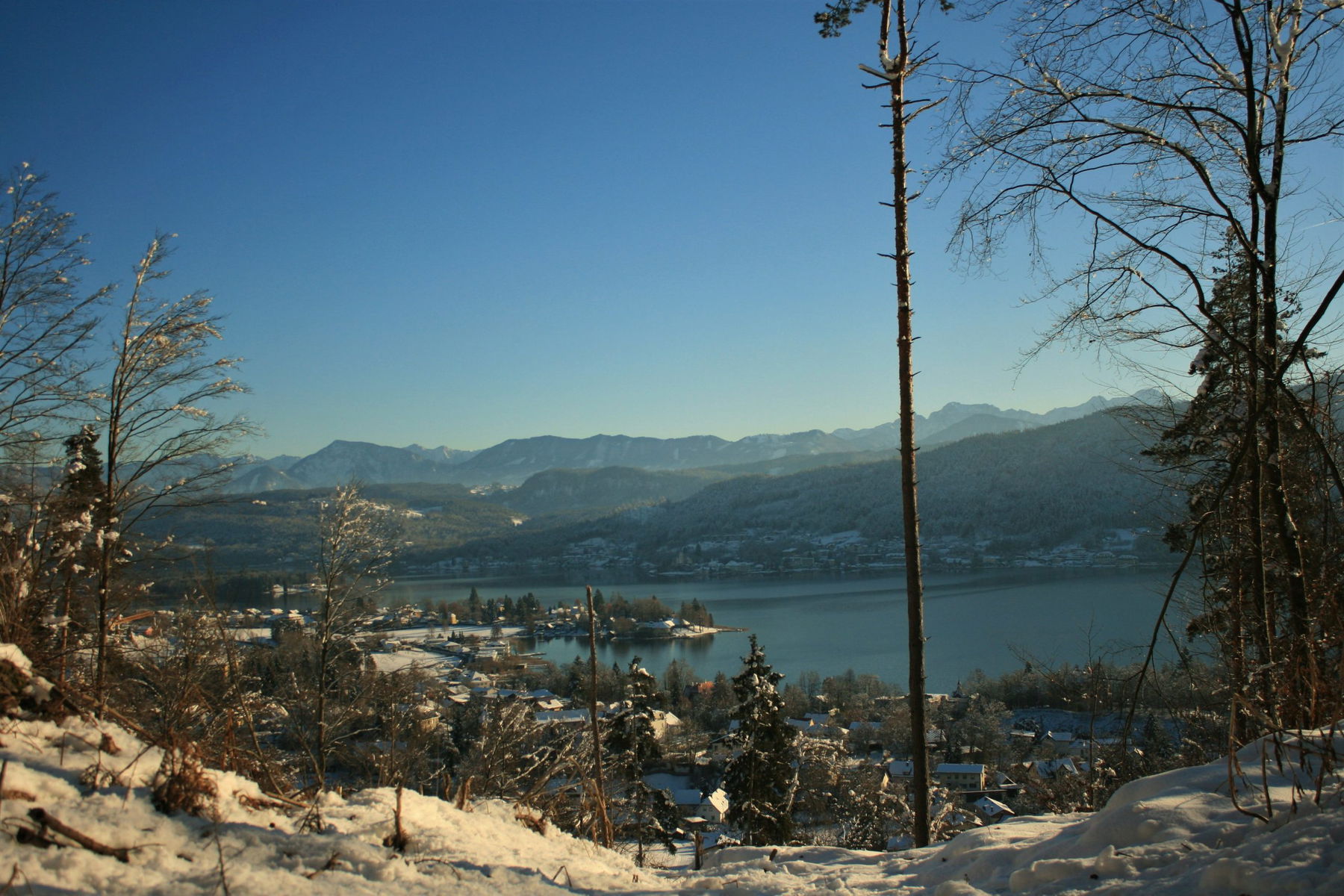 Kurz darauf trifft man auf den Wörthersee Rundwanderweg und kann die schöne Aussicht auf den Wörthersee und auf Pörtschach genießen. Die Sonne wärmt und es ist Zeit für eine kurze Pause.