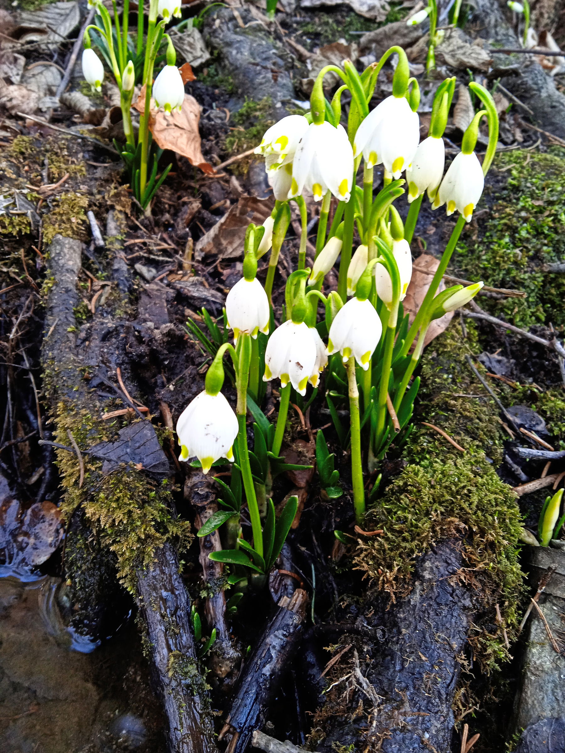 Nun geht es über Forststraßen stetig bergab und nach dem Überqueren der Keutschacher Straße führt der Wanderweg nahe der Ortschaft Techelweg in die Moorlandschaft rund um den Hafnersee. Hier unten gibt es noch einige Schneefelder und es ist auch kälter als oben beim Pyramidenkogel.