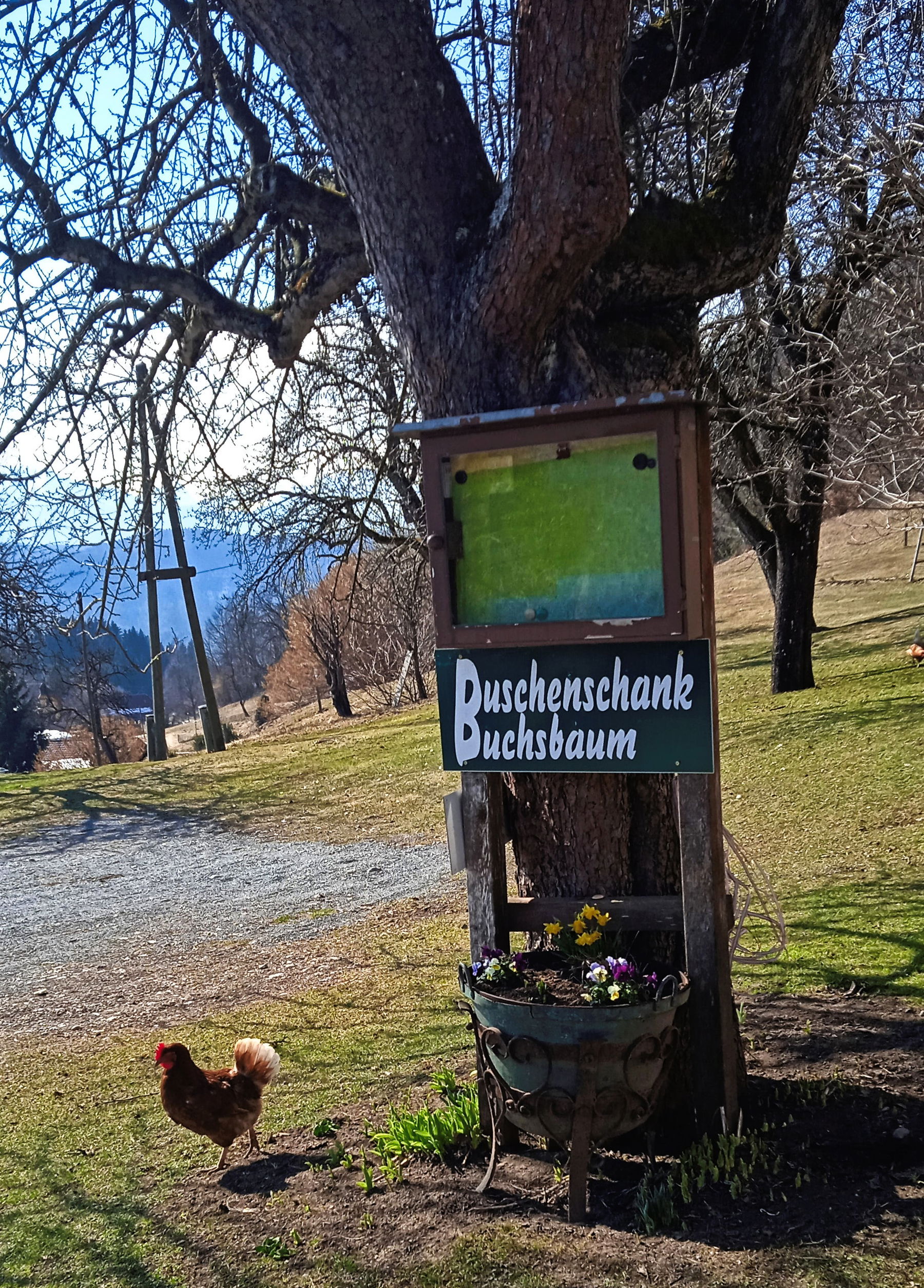 Weiter führt der Weg durch den Wald und über Wiesen zur Buschenschank Buchsbaum. Von hier ist es nicht mehr weit zum Pyramidenkogel.