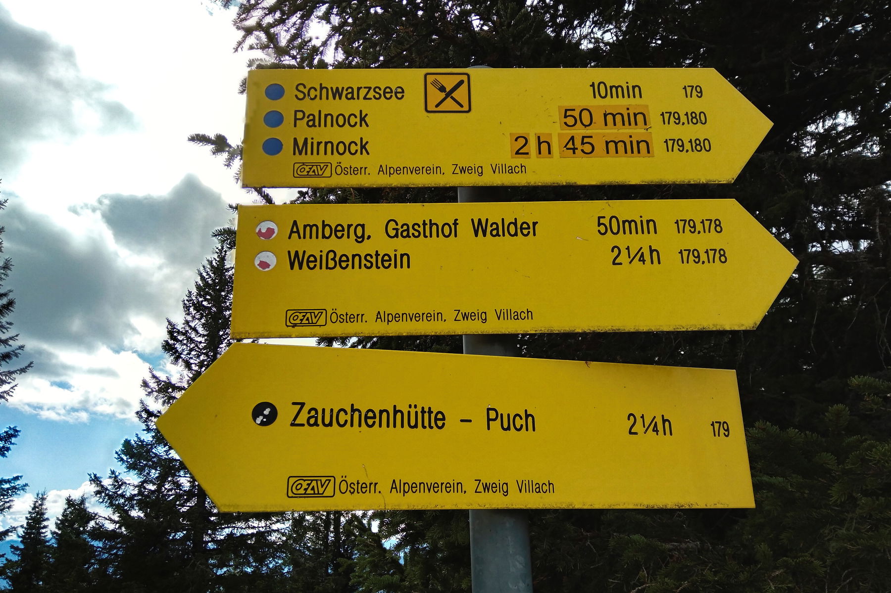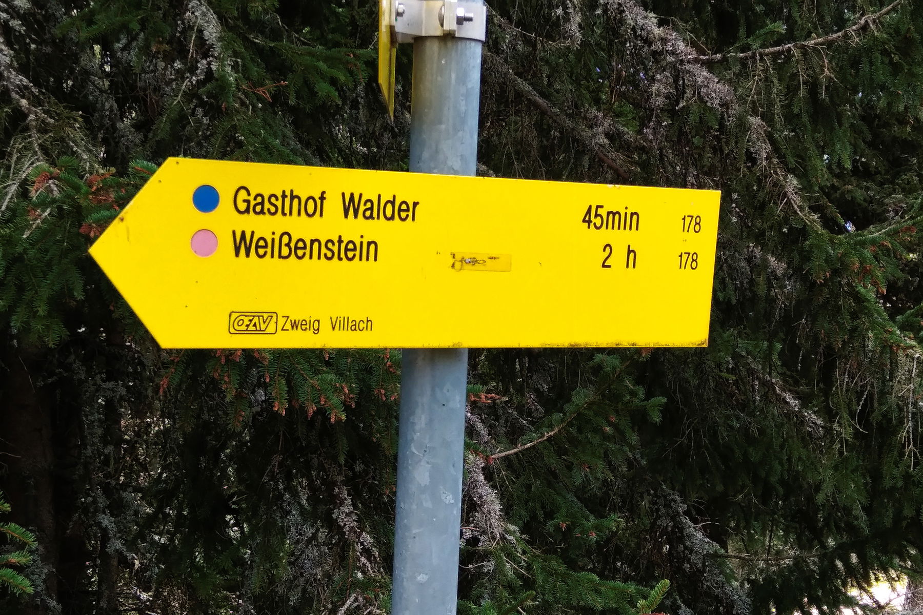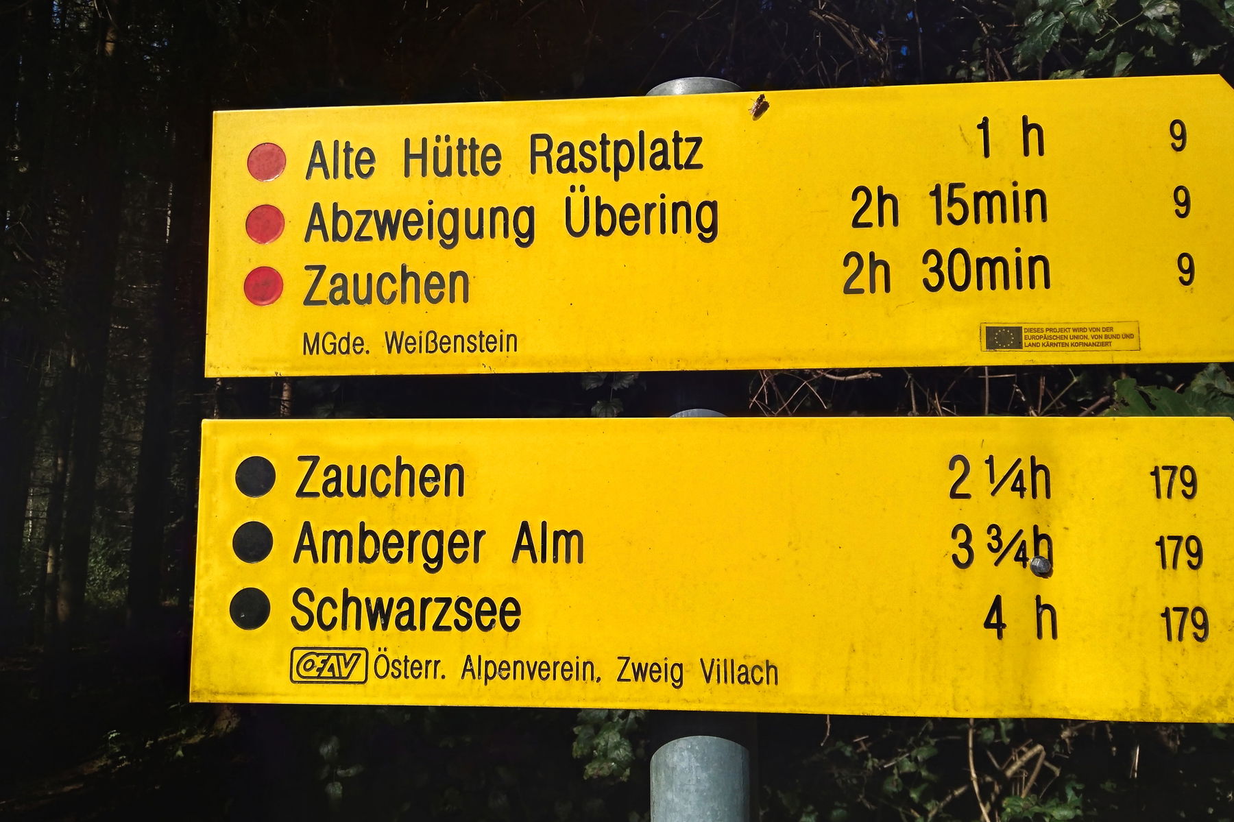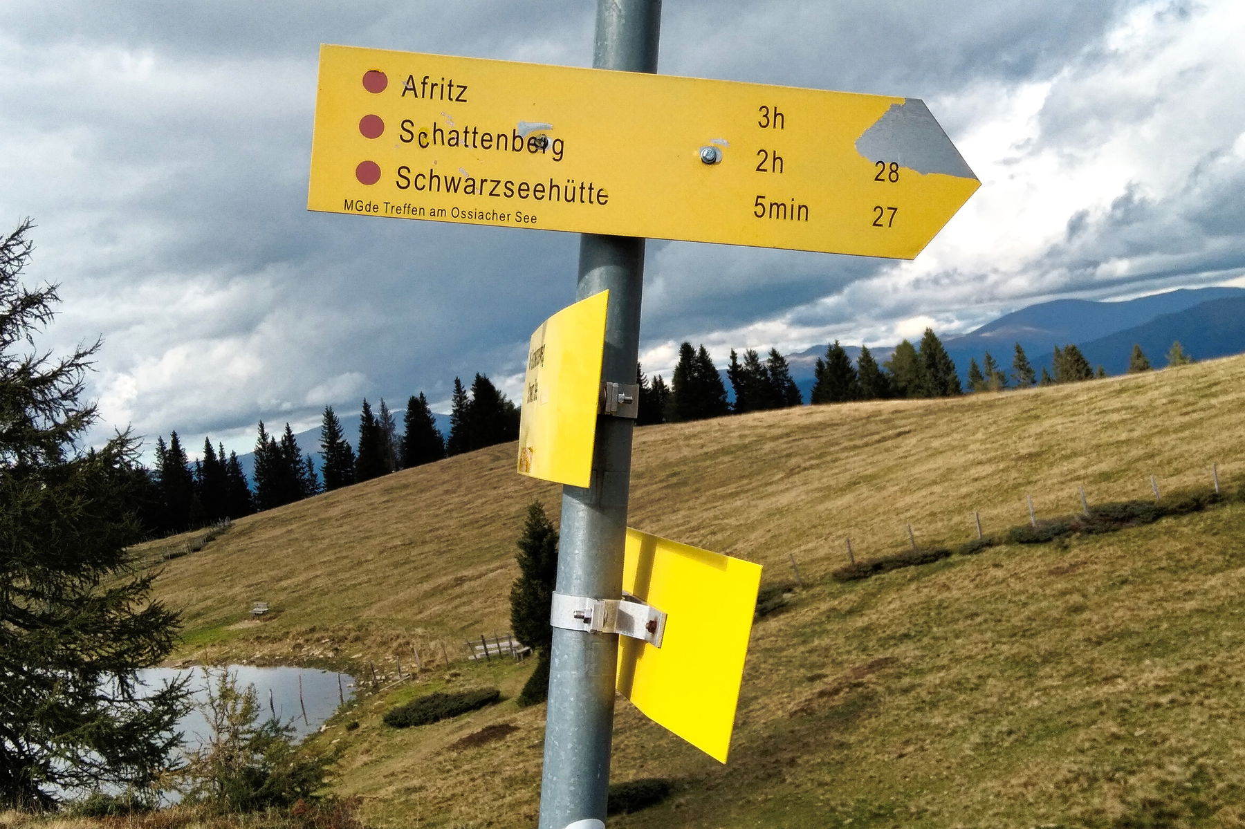 Und endlich erblicken wir auch wieder die vertrauten gelben Wegweiser.