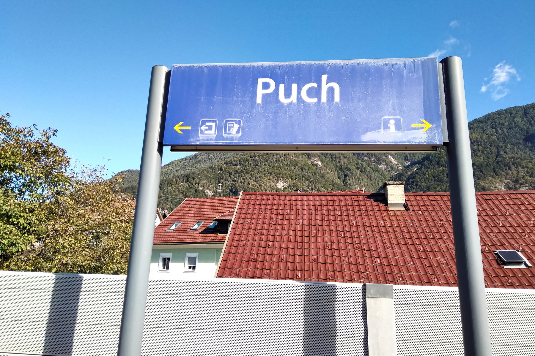 Wir fahren mit dem Zug in einer knappen Stunde von Klagenfurt nach Puch bei Villach.