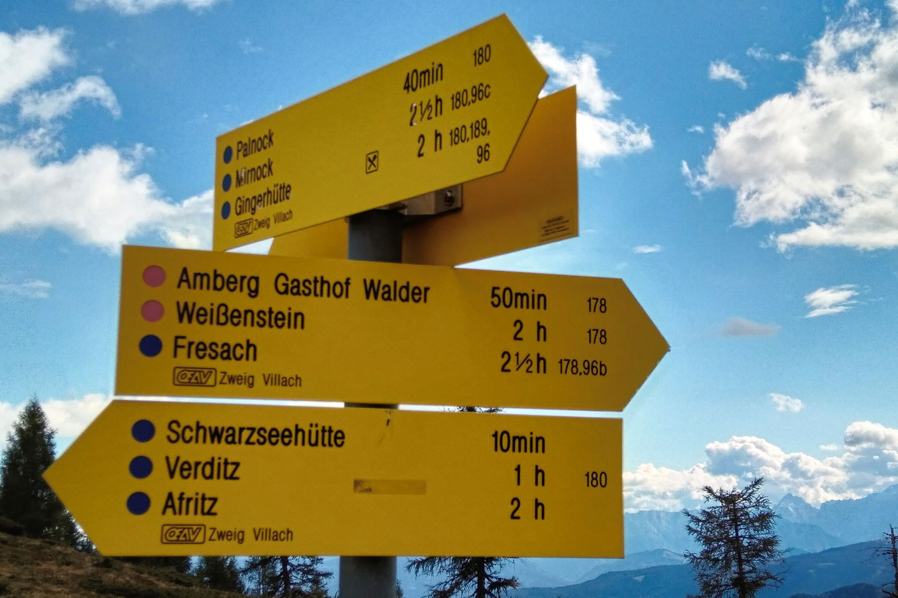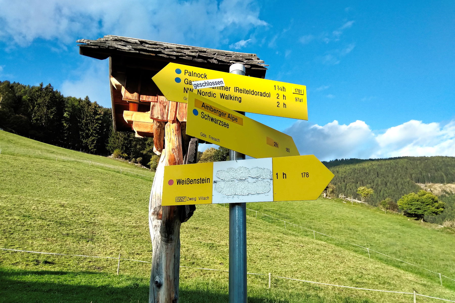 Wegweiser auf der Amberger Alm. Foto: Herbert Fuchs