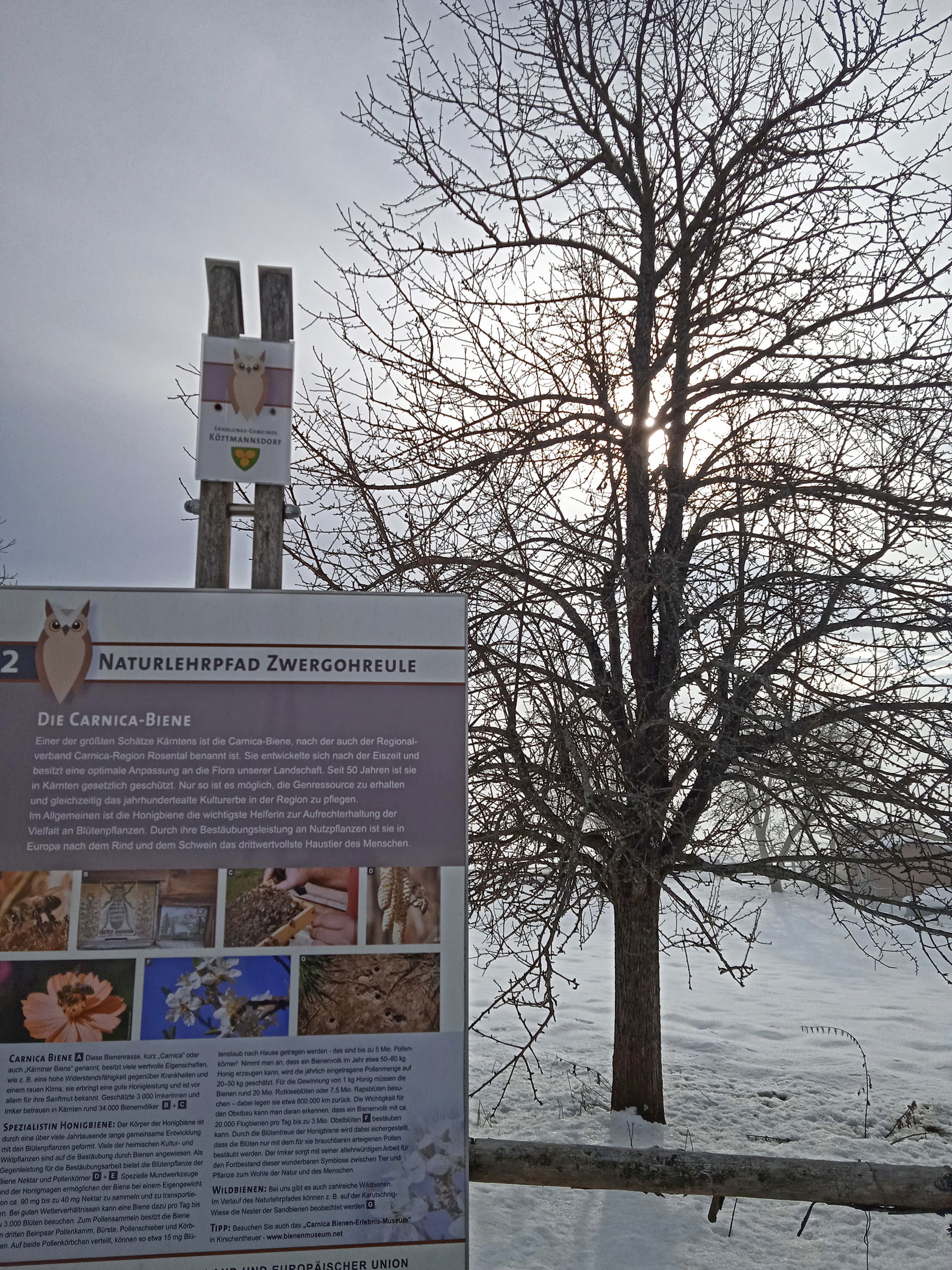 Auch der Naturlehrpfad Zwergohreule ist mit der Aussicht auf die Karawanken und ins Seental sowie den Informationstafeln über den Sattnitz ist immer wieder ein Erlebnis.